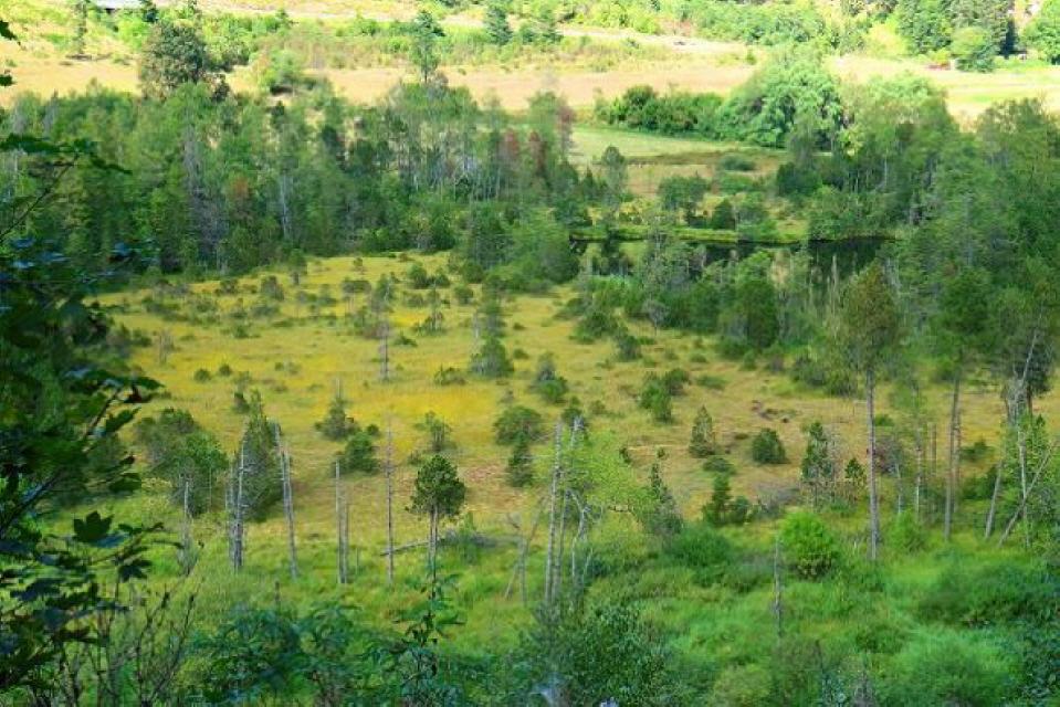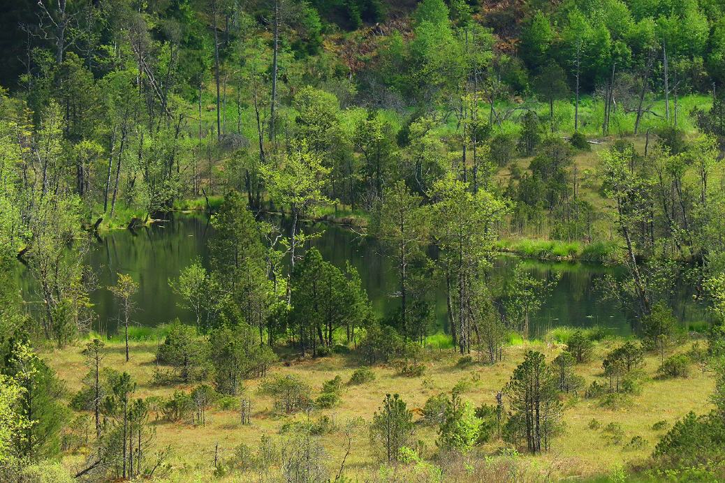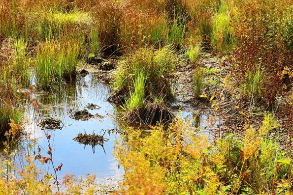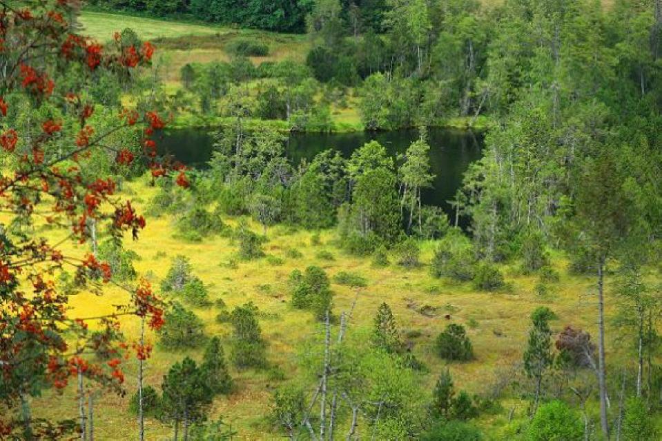 Wo in Übergangsbereichen ein besseres Nährstoffangebot besteht, sind im Juni die prächtigen, weißen Blüten des Fieberklees zu beobachten. Daran schließt sich ein wechselnd breiter Waldgürtel an, den zum Teil die Spirke, die aufrechte Form der Bergkeifer, besiedelt. Dort, wo das Nährstoffangebot im Boden günstiger ist, wachsen Moorbirke, Schwarzerle, Faulbaum und Fichte. Besonders im Bereich der Mündung des Urseebachs wird dies deutlich. Mit zunehmender Austrocknung verlandender Flächen entwickeln sich Pfeifengrasbestände und schließlich Birken-Fichtenwälder.