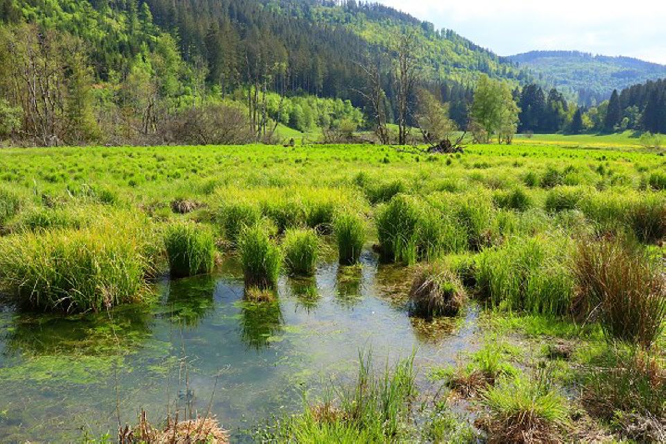 Der Urseeweg führt von der Wassertretstelle Silberbrünnle ins Urseetal bei Lenzkirch im Schwarzwald, wo ein seltenes Hochmoor zu bestaunen ist. Je nach Route ist die Rundwanderung rund 10 km lang und ist innerhalb von 3 Stunden zu bewältigen. Sie führt auf sonnigen und barrierefreien Wegen rund um das Naturschutzgebiet Ursee mit fantastischen Blicken auf die seltene Flora des Hochmoores. Dabei gibt es viel zu entdecken. Die Wanderung kann übrigens auch direkt ab dem Kurhaus Lenzkirch gestartet werden. Von dort geht es flussaufwärts den Urseebach entlang bis zum Silberbrünnle.