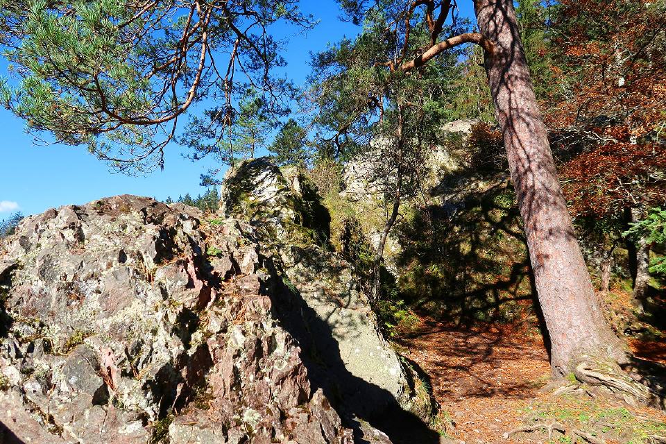 Der Nägelefelsen bzw. der Standort der ehemaligen Burg Neu-Blumberg, auch Räuberschlössle genannt, ist beeindruckend und bietet einen fantastischen Blick hinunter in die Wutachschlucht. 80 m ragt der Felsen in die Höhe. Oben hat er eine Plattform, die betreten werden kann.