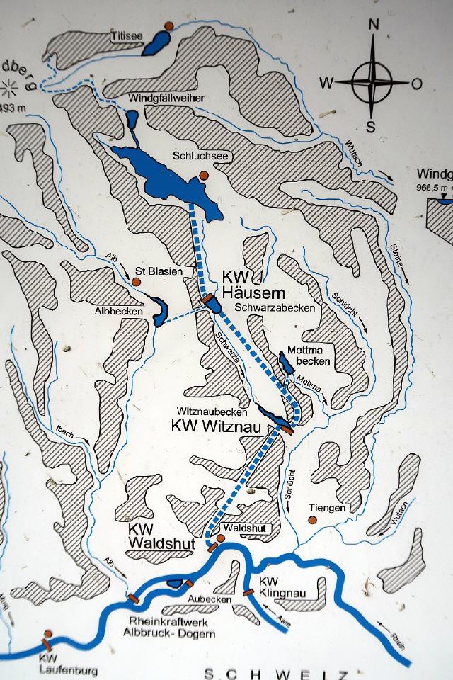 Der Stausee liegt zum größten Teil seiner Fläche auf dem Gebiet der Stadt St. Blasien, ein kleiner Teil des Sees im Westen sowie fast die ganze Staumauer liegen auf dem Gebiet der Gemeinde Dachsberg.