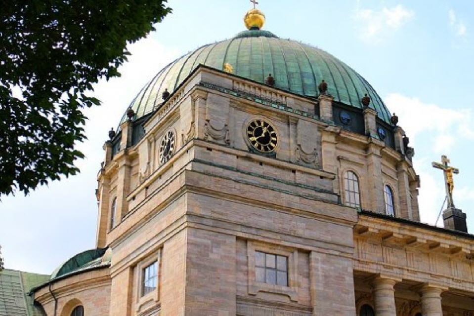 Zu jener Zeit stand die berühmte Abteikirche mit der drittgrößten Kuppen in Europa eben vor der Vollendung. Eingeweiht wurde sie 1783. Keine 100 Jahre später, 1874, erlebte sie eine schwere Brandkatastrophe. 200 Jahre nach der Weihe brachte eine umfassende Restaurierung sie in die Form, in der wir sie heute erleben dürfen. In weißem Marmor poliert erstrahlt die Rotunde im Innern, nur das Gestühl und die Orgel am Ende des Mönchchores stehen dazu im dunklen Kontrast. Gewaltig erscheinen die Dimensionen, und doch ruht alles in vollendet harmonischen Proportionen.