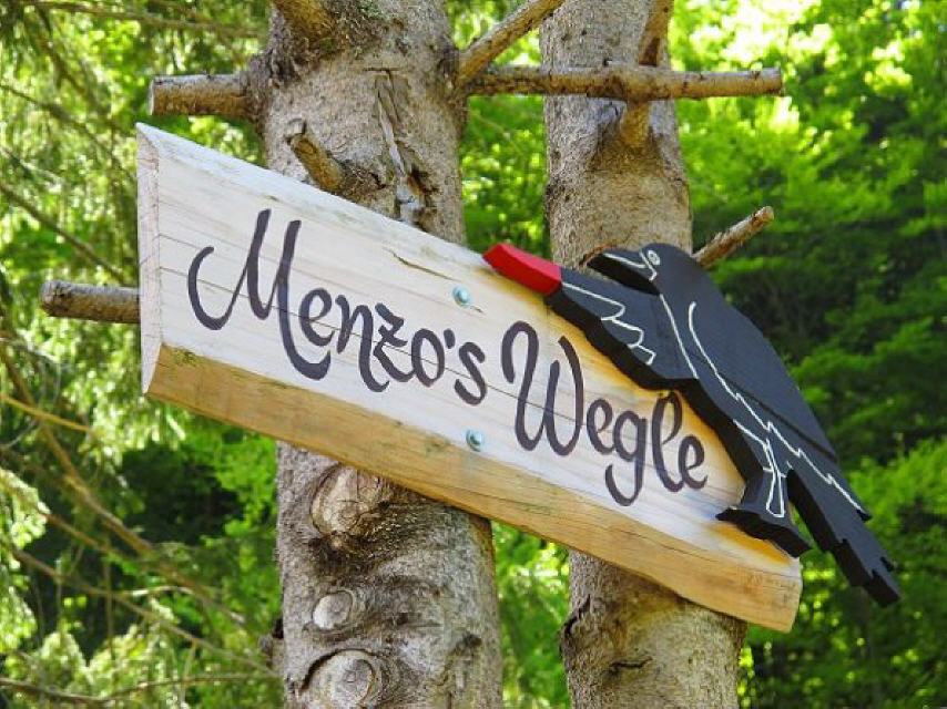 Bald erreichen wir den Albweg am Fuß der Moränen, folgen dem Schotterweg nach rechts und bleiben auf dem Albweg. Der Rabe weißt uns den Weg „Rund um die Kluse“, vorbei am „Moränen-Monschderle“, an „Flößer‘s Rast“ und dem „Titlis Blick“ bis zum Talschluss. Dem Weg folgend queren wir über einen Holzsteg die Menzenschwander Alb.
