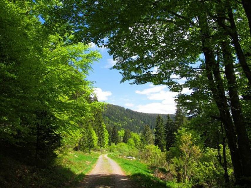 Nach etwa 500 Meter verlassen wir den Weid-Berg, folgen dem Teerweg (Brandweg) bis zum Sägehüttle. Dort geht es Richtung Norden übers Ellerwegle zum Ausgangspunkt, dem Mösle-Parkplatz. Von hier hat man nochmals einen sehr schönen Blick auf den Schwarzberg und kann den vielen kleinen weißen Punkten nochmals ein „Auf Wiedersehen in Menzenschwand“ zurufen.