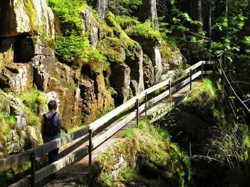 Der Premiumwanderweg Menzenschwander Geißenpfad entführt uns auf idyllischen Pfaden, gelegentlich begleitet vom Klingen der Ziegenglocken zu herrlichen Weitblicken über das Menzenschwander Tal bei Sankt Blasien inmitten der traumhaften Kulisse des Feldbergmassivs. Die Menzenschwander Wasserfälle sorgen im Sommer für Erfrischung.