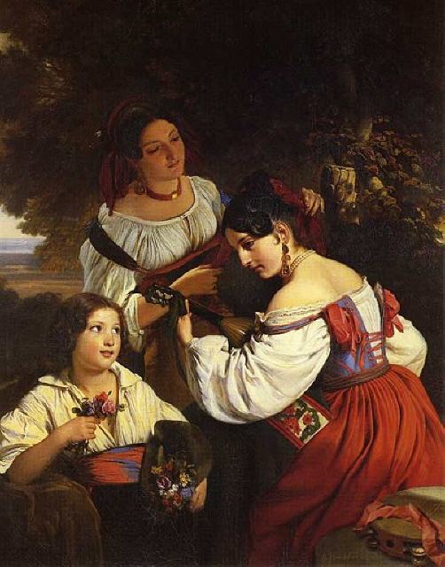 Von 1833 bis 1834 bereiste er Italien, wo er sich das Atelier mit Johann Baptist Kriner teilte. Hauptsächlich entstanden romantische Genreszenen im Stil Louis Léopold Roberts. In Rom schloss er sich einem Kreis französischer Künstler an.