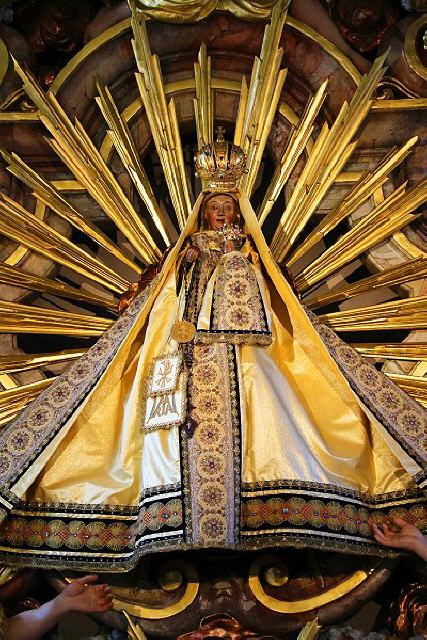 Die beiden neungeschossigen Kirchtürme sind an beiden Seiten des Chores und bestimmen das äußere Erscheinungsbild des Ortes. Wertvollster Schatz und ältestes Kleinod der Kirche ist das romanische Gnadenbild der „Mutter Gottes im Thron“, das bei der Gründung des Augustinerchorherrenstiftes 1118 mit hierher gebracht wurde und dem Ort seinen Namen gab: Cella Sanctae Mariae – Marienzelle – hieraus wurde schließlich St. Märgen.