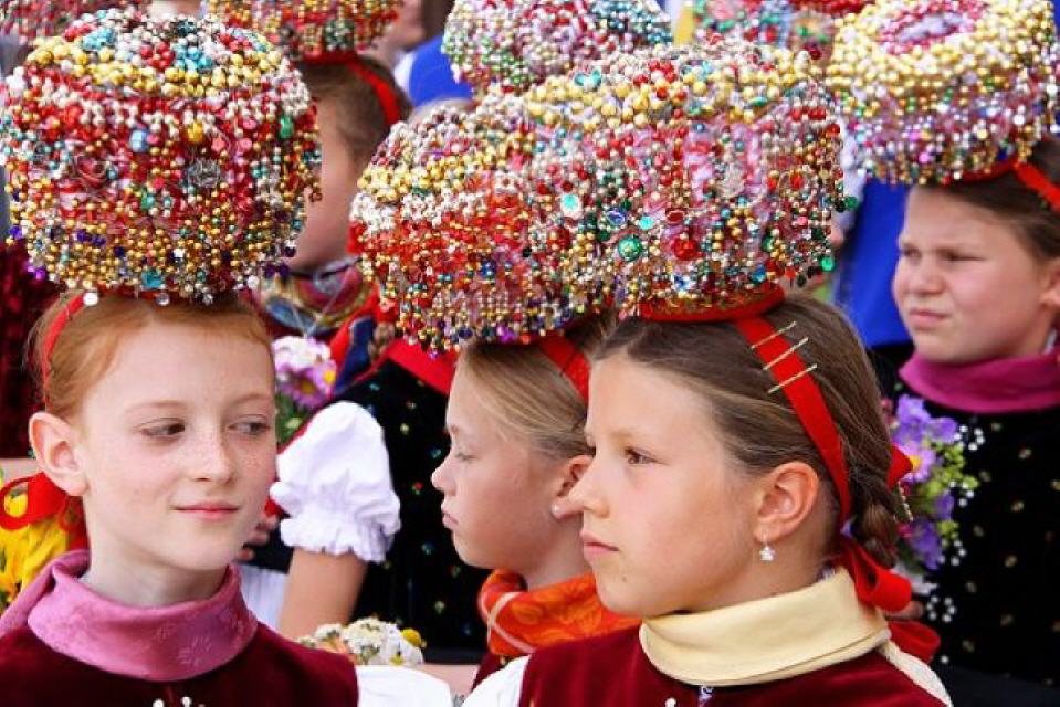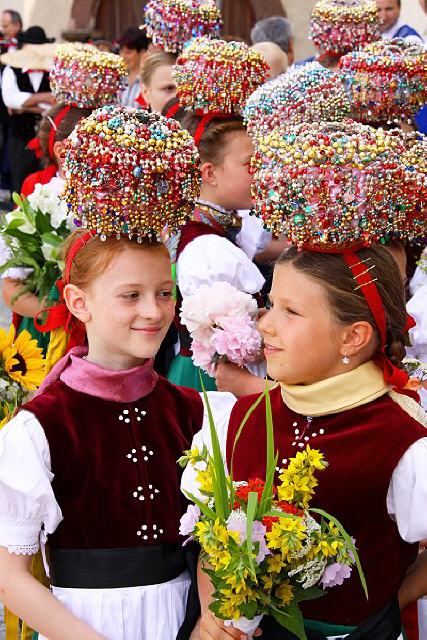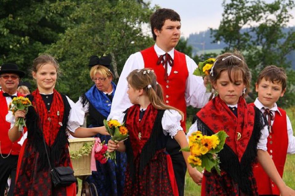 Sie feiern Kirchenfeste mit Flurprozessionen. Dazu kleiden sie sichin ihre schönen Trachten – die Kinder mit Perlenschäppele, die Frauen tragen weiße Schnapphüte mit Blumen und Bändern, die Männer schwarze Joben und Hüte. Hier oben auf den stillen Höfen gibt es noch Trachtennäherinnen und Frauen, die die Kunst des Schäppel- und des Hutmachens beherrschen.