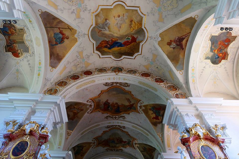 Musik erklingt bei Konzerten im Fürstensaal, in dem einst die Gäste bewirtet wurden. Peter Thumb entwarf auch die Klosterbibliothek, die schönste im süddeutschen Raum. In das hohe, freskenbemalte Gewölbe greifen die Stichkappen tief hinein, gliedern die Bibliothek mit ihrer Galerie und den geschwungenen Bücherschränken lebhaft und rokokobeschwingt.