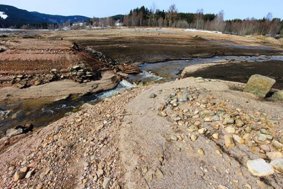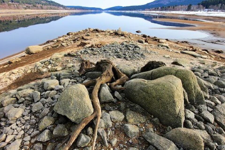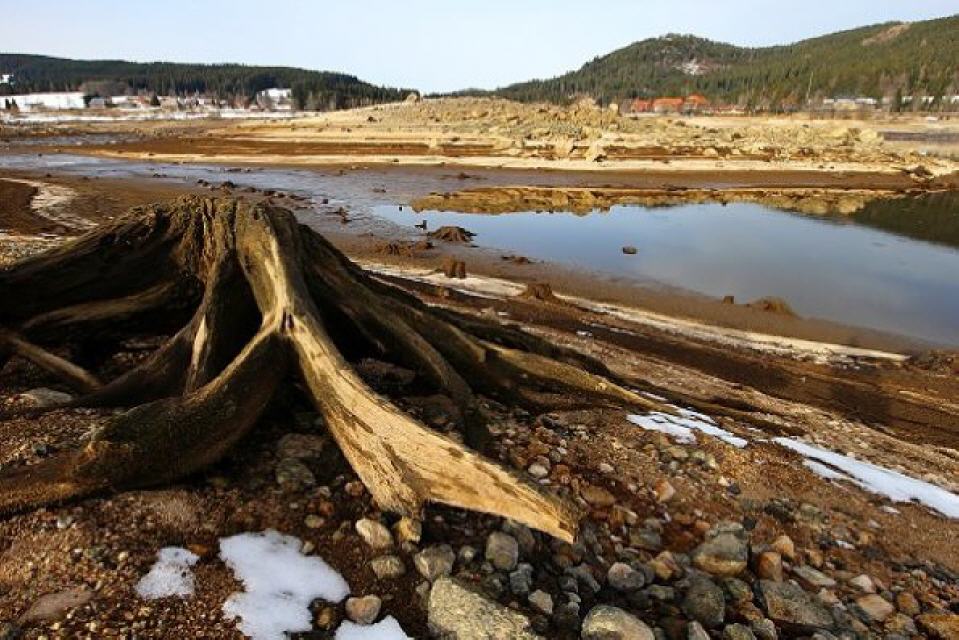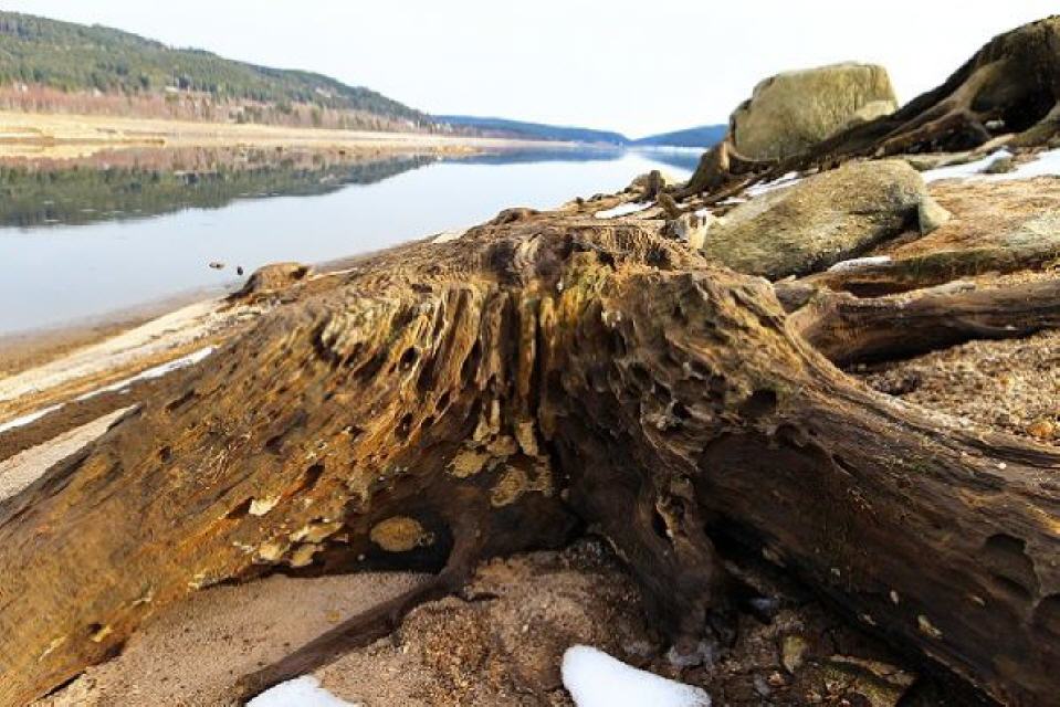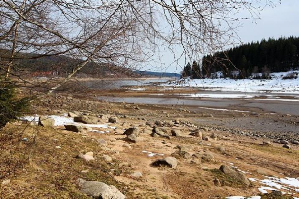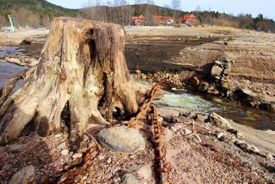 Die Bilder oben zeigen den Schluchsee bei extrem niedrigem Wasserstand, wie er nur selten zu sehen ist.