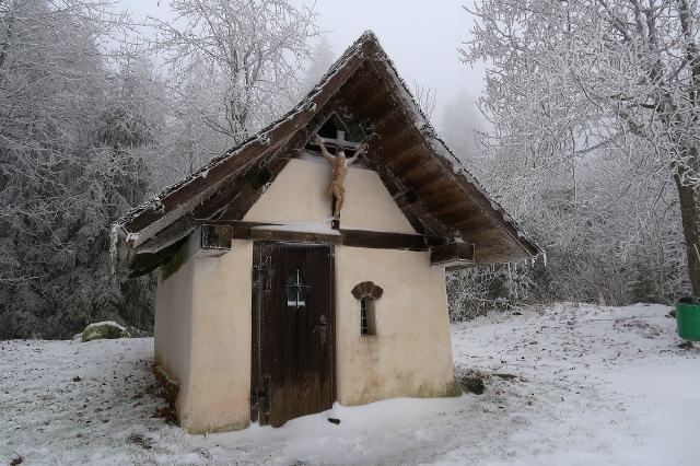 2. Route: Rückentrage für Kleinkinder erforderlich (zum Teil unbefestigte Pfade), 20 Gäg-Stationen, 5 km (1,5 bis 2 Stunden). Ab Wanderparkplatz (Grill- und Spielplatz) bis zum Russenkreuz auf der Hochebene wie Route 1. Dort jedoch geradeaus gehen, dem Förster-Dinger-Weg folgend, an der Skihütte vorbei, durch einen Waldabschnitt bis zur Hellewanderkapelle. Kurz nach der Kapelle geht es links weiter, bis man oberhalb einiger Schwarzwaldhöfe den Wald verlässt. Hier verläuft die Route links am Waldrand auf einem schmäleren Pfad, bis man wieder die Skihütte erreicht. Jetzt muss man nur noch bis zum Russenkreuz laufen, rechts abbiegen und man gelangt zurück an den Startpunkt.