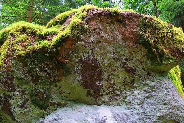 Denn auf dem Monolith ist eine schalenartige Vertiefung zu sehen. Und unter den Moosen und Flechten führt seitlich eine Ablaufrinne fort. Das könnte kein Zufall sein, schließlich haben auch andere Schalensteine im Schwarzwald ähnliche Muster. Könnte es sich hier um einen Opferstein gehandelt haben?
