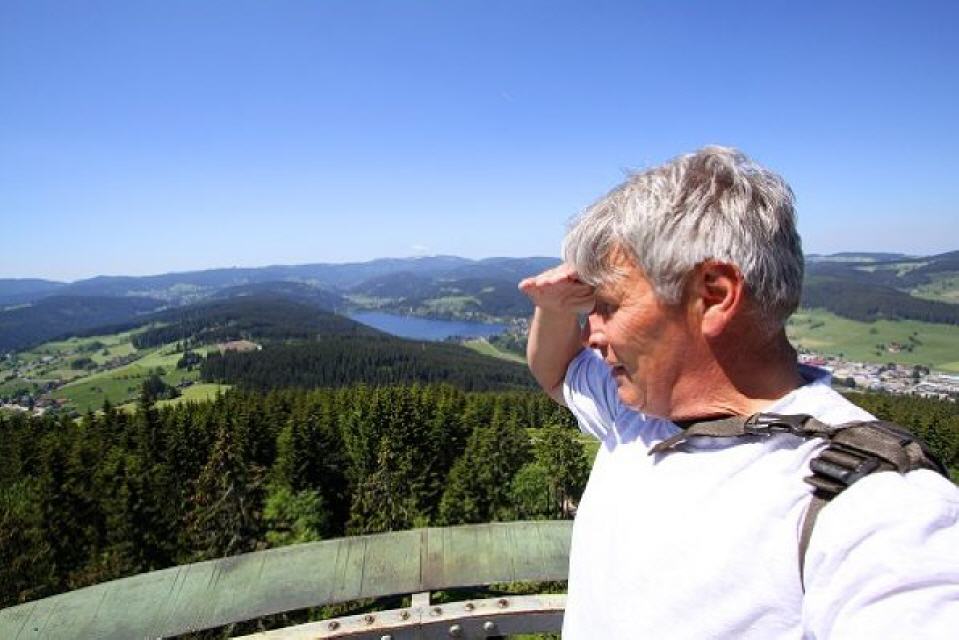 Und obwohl er auf der Route zahlloser Wanderwege liegt, ist er allenfalls in der Region bekannt. Dabei bietet sich von der Aussichtsplattform des Turmes ein imposanter Blick auf das Feldbergmassiv, auf den Titisee und sogar bis zu den Alpen. Großartig nimmt sich von hier aus auch der Kandel aus, und die Bergrundungen im Titiseegebiet lassen ihren Ursprung durch den einstigen Feldberggletscher erahnen. Die Lage mag auch der Grund gewesen sein, hier einen Aussichtsturm zu errichten.