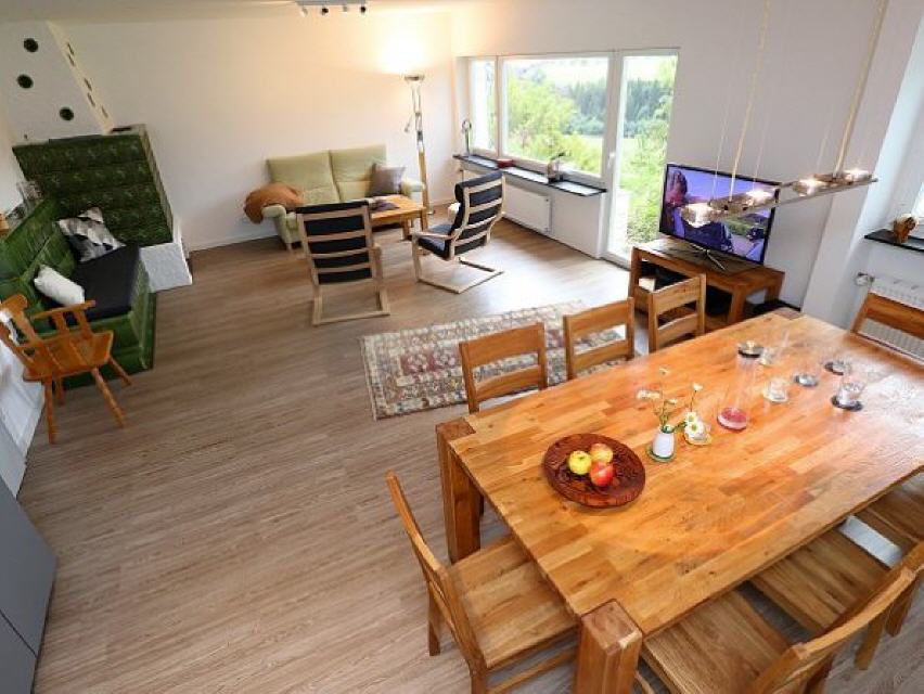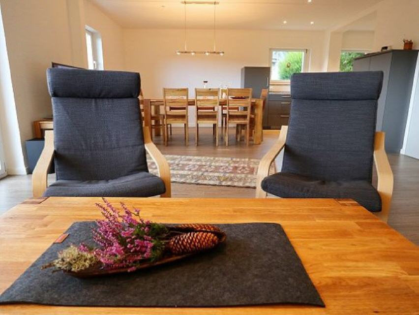 Eine wunderbare Aussicht über das Tal, einen windgeschützen Sitzplatz in sonniger Südlage auf der Terrasse und die vielen Schlafmöglichkeiten im Haus, auch für die große Familie. Das Haus verfügt über 5 Schlafzimmer (2 Doppel- und 3 Einzelzimmer), 2 Dusch- und 1 Wannenbad, gemütliches Wohnzimmer mit Kachelofen, voll ausgestattete Küche, Waschmaschine und Trockner.