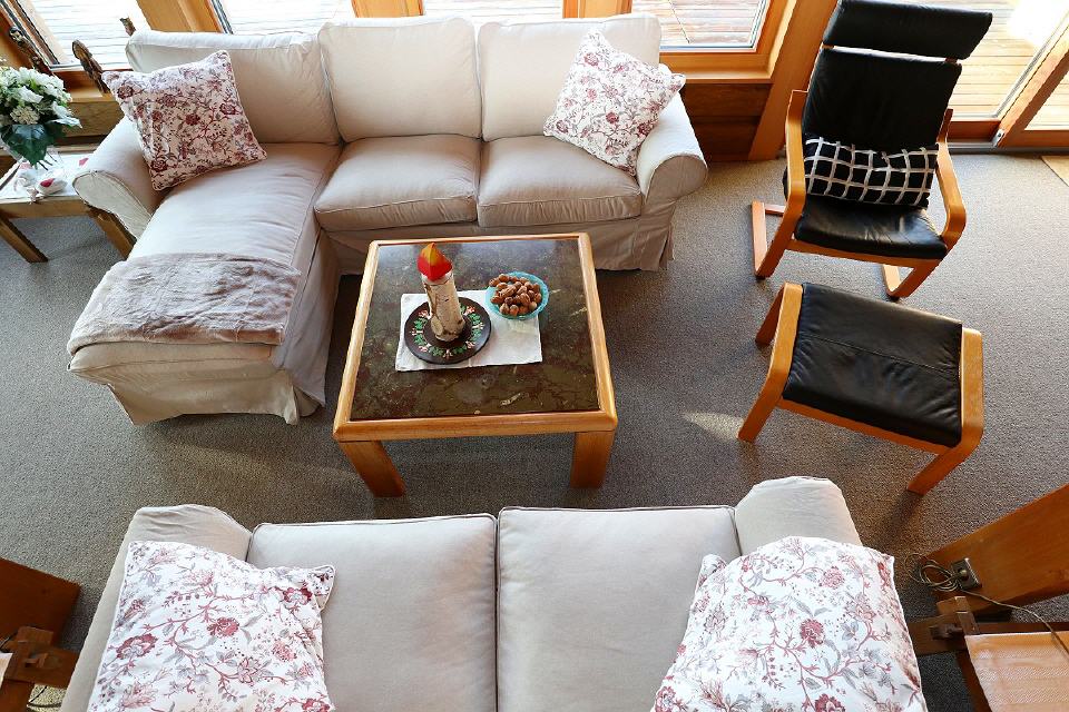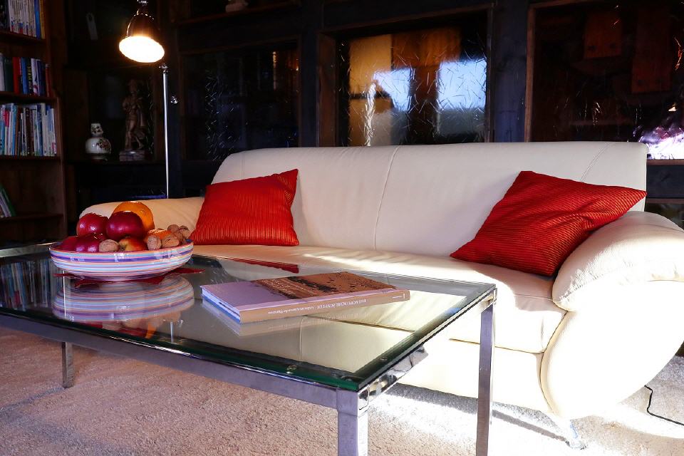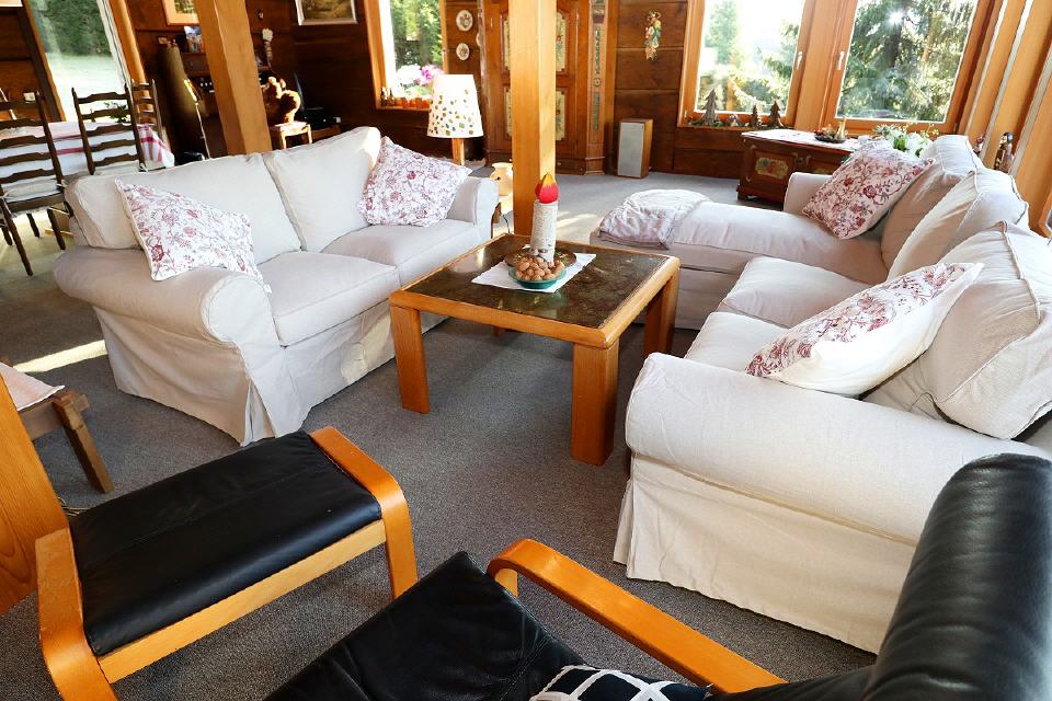 - Wohn-Essbereich: Sitzecke, Tisch und 8 Stühle, Stereoanlage, Flachbild-TV und DVD-Spieler, Bücher und Filme (DVD)