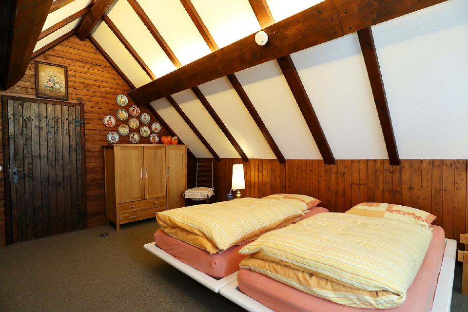 - Schlafzimmer: Doppelbett (140 x 200 cm), Schrank, Sitzecke