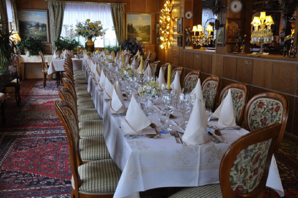 Gemütliche Atmosphäre, exzellente Betreuung. Unser Personal bemüht sich persönlich um Ihr Wohlergehen. Weit bekannte heimische und internationale Spezialitätenküche sowie saisional bedingte Spezialitäten wie Wild, Spargel, Pfifferlinge, Steinpilze und vieles mehr. Täglich wechselndes Angebot an hausgemachten Kuchen und Torten aus eigener Konditorei – nur das Beste und Feinste für Ihren Genuss. Lassen Sie sich verwöhnen!