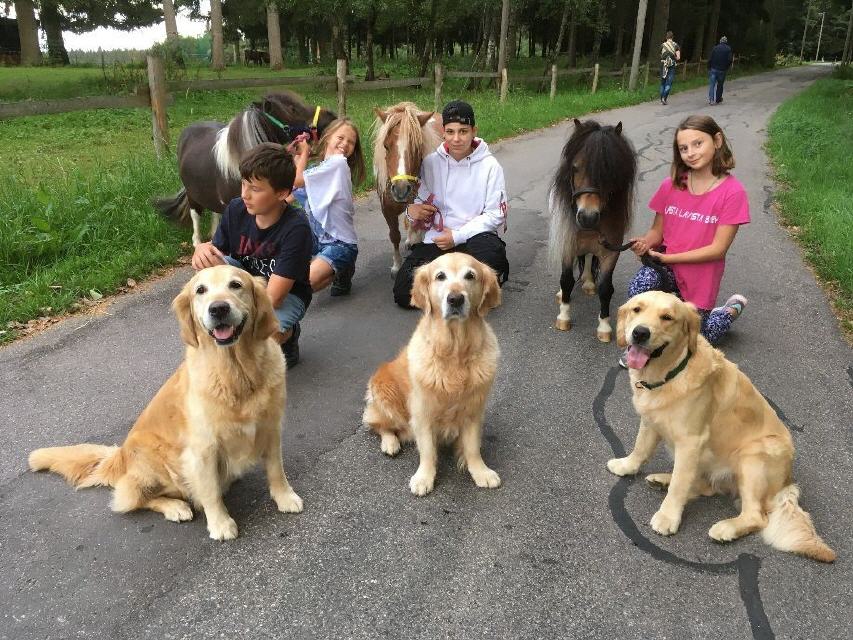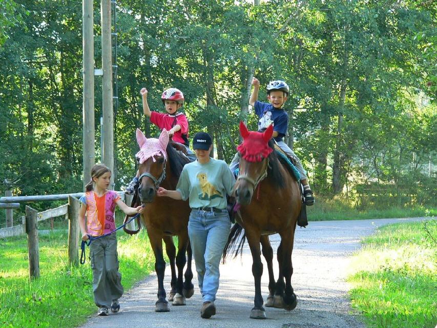 Auf unseren Pferden bieten wir geführte Ausritte (nur für geübte Reiter) und für die kleineren Gäste Ponyreiten an.Bitte Reit- oder Fahrradhelme für das Reiten nicht vergessen! Selbstverständlich darf auch jeder bei der Stall- und Pferdepflege behilflich sein. Da unsere Tochter den ganzen Tag berufstätig ist, finden Reiten und Stallarbeit erst danach statt. Tagsüber haben die Pferde sozusagen frei, damit sie abends gute Nerven für die Kinder haben.