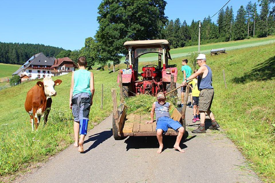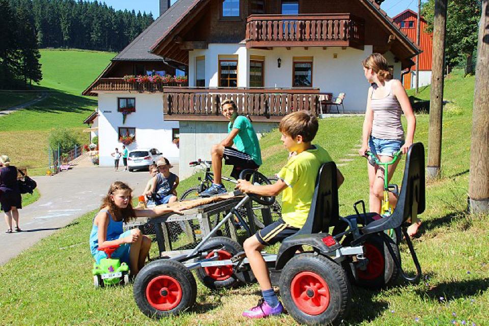Der Hof ist groß; hier können kleine Rennfahrer radfahren oder mit Tretautos herumkurven. Zusätzlich gibt es einige Spielgeräte wie Schaukel, Rutsche, Turnstange und Basketballkorb sowie einen Sandkasten. Unsere Gäste erhalten die Hochschwarzwald-Card. Damit können Sie über 50 Attraktionen ringsherum kostenlos nutzen, zum Beispiel ins Badeparadies am Titisee gehen, Boot fahren und noch viel, viel mehr…