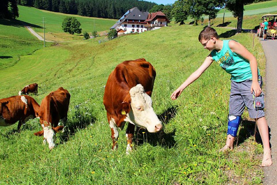 Unbeschwerte Urlaubstage verbringen, abseits vom Alltag und wo Sie noch tief durchatmen können. Der Weißenhof ist die ideale Urlaubsadresse für alle, die die schönsten Tage des Jahres voll auskosten möchten. Relaxen, wandern, einfach sich selbst sein. Kinder können hier noch nach Herzenslust spielen und herumtollen, Tiere streicheln oder mit dem Bauern auch mal Traktor fahren. Der Weißenhof liegt in der Nähe von Titisee-Neustadt in einem ursprünglichen Schwarzwaldtal des kleinen Eisenbacher Ortsteils Schollach. Nur 50 Meter entfernt schlängelt sich ein Bach durch das Tal. Mit etwas Glück sieht man auch ein paar Forellen darin. Und abends zeigen sich am Waldrand Rehe, Füchse oder Hasen.