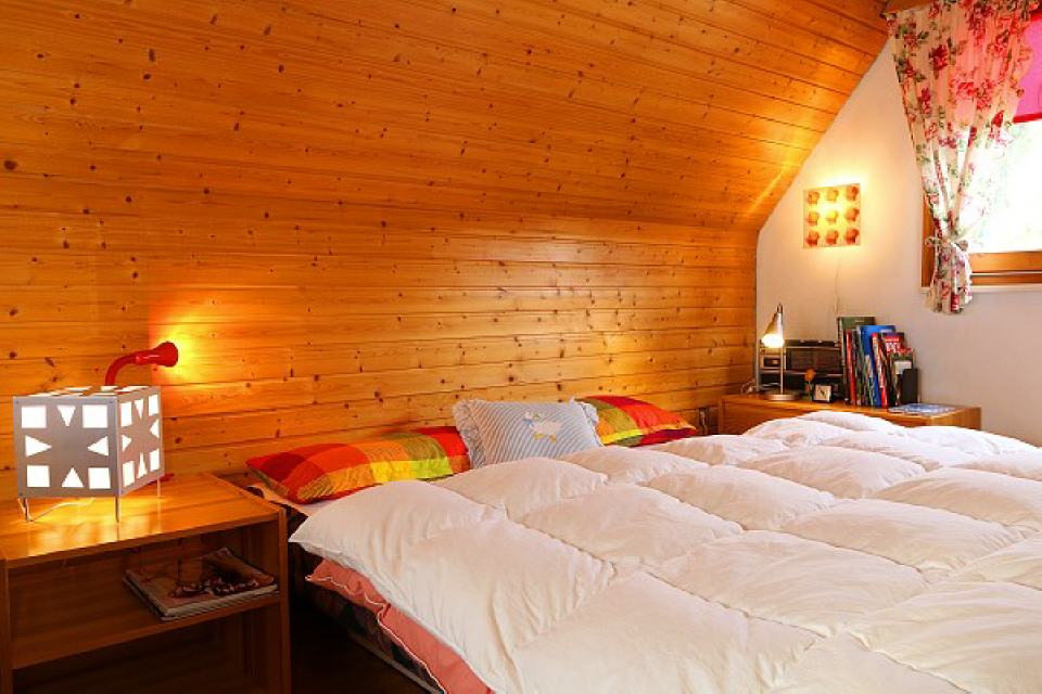 Schlafzimmer: 1. Stock, ausgestattet mit Doppelbett (180×200), Fußbodenheizung, Kleiderschrank