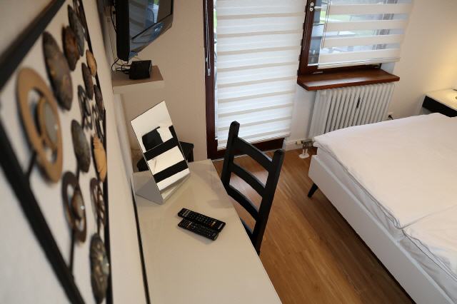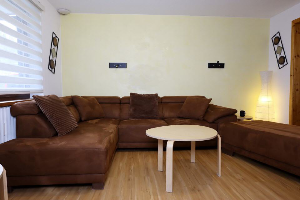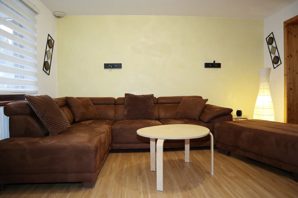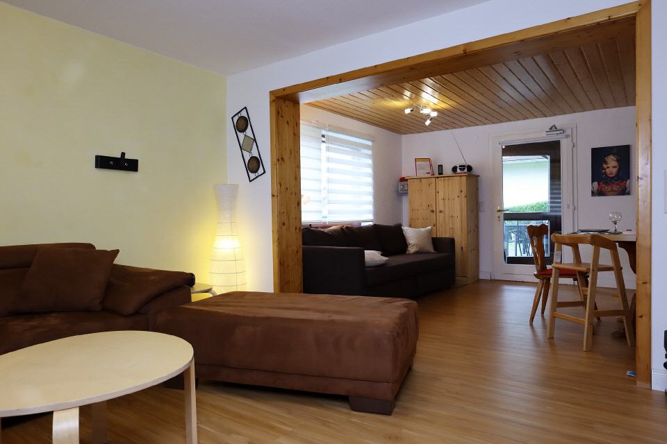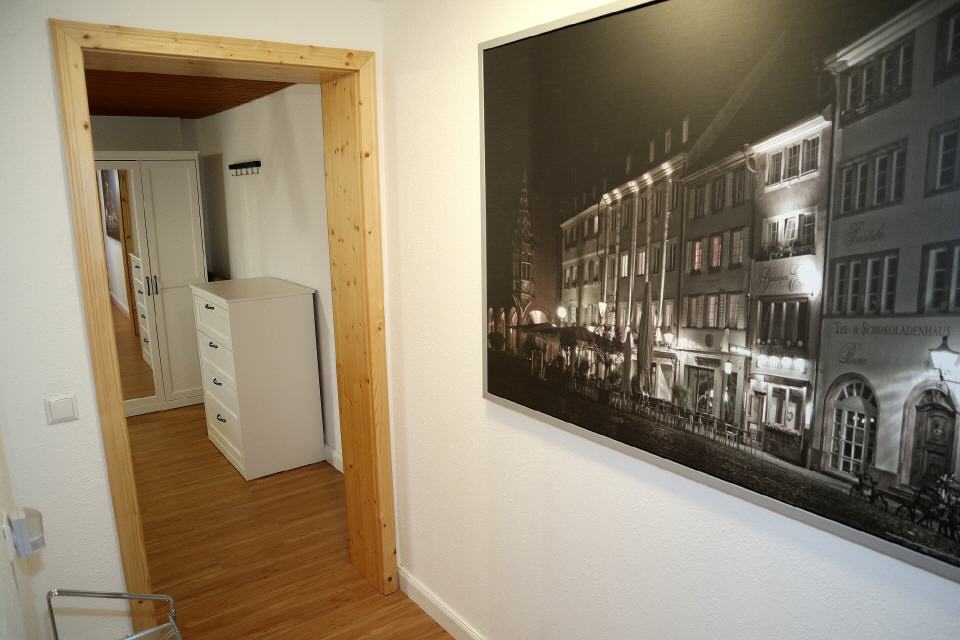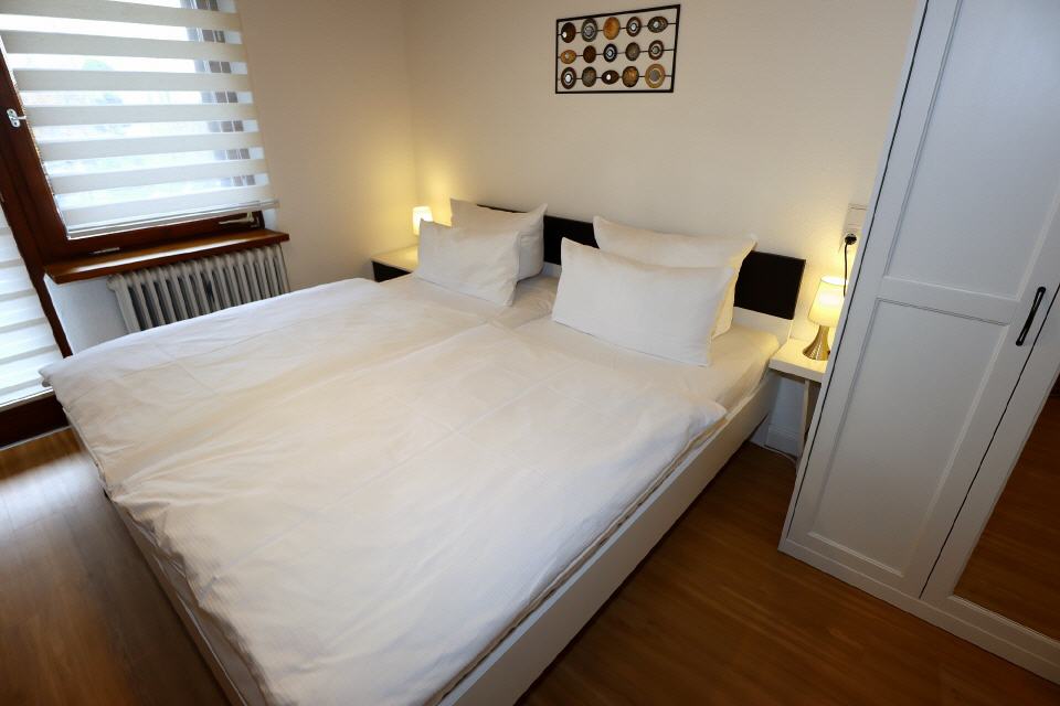Die Ferienwohnung verfügt über eine offene Küche, einen Wohn-Essbereich, ein Wohnzimmer, 1 Schlafzimmer und 1 Badezimmer. Die offene Küche eingerichtet mit Backofen und Grill, Cerankochfeld, Geschirrspülmaschine, Kühlschrank, Wasserkocher, Toaster, Eierkocher, Kaffee-/Tee-Zubereitungskanne und Kaffeemaschine (Tassimo) etc. Der Wohn-Essbereich mit einem zusätzlichen Schlafsofa (1,45 x 2,00m ) und einer Essecke mit Bank und Stühlen für bis zu 6 Personen. Die große Wohnlandschaft im Wohnzimmer mit Flachbildschirm, DVD-Player, Radio und CD-Player lädt zum gemütlichen Beisammensein ein. Das Schlafzimmer ist mit einem Doppelbett (1,80 x 2,00 m), Bettwäsche, Sitzgelegenheit mit Tisch und Flachbildschirm ausgestattet. Das Bad ist mit großer Regendusche, Waschbecken und WC, Handtüchern, Fön, Handtüchern, Kosmetikspiegel ausgestattet.