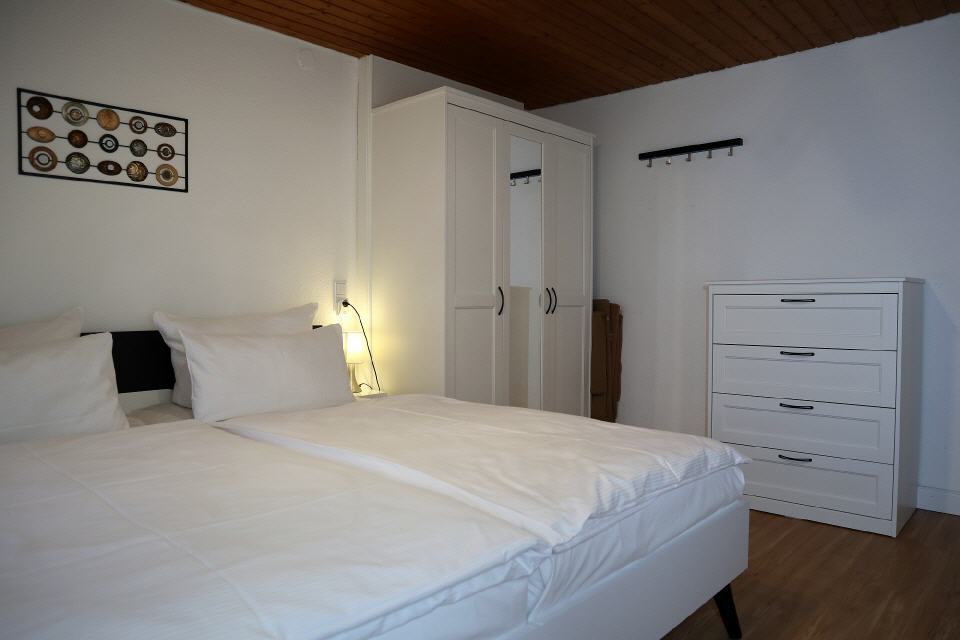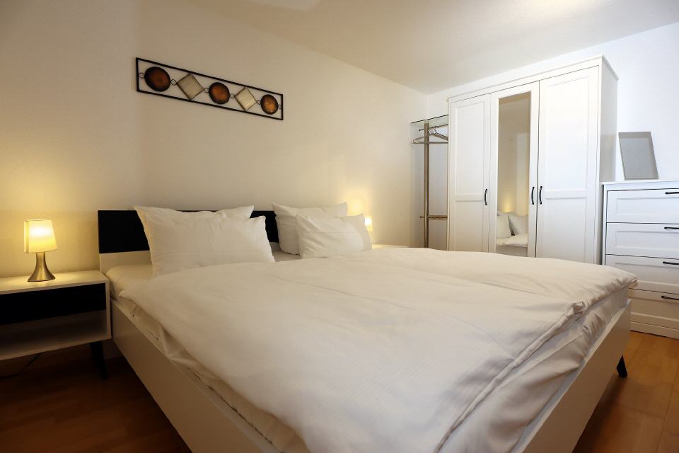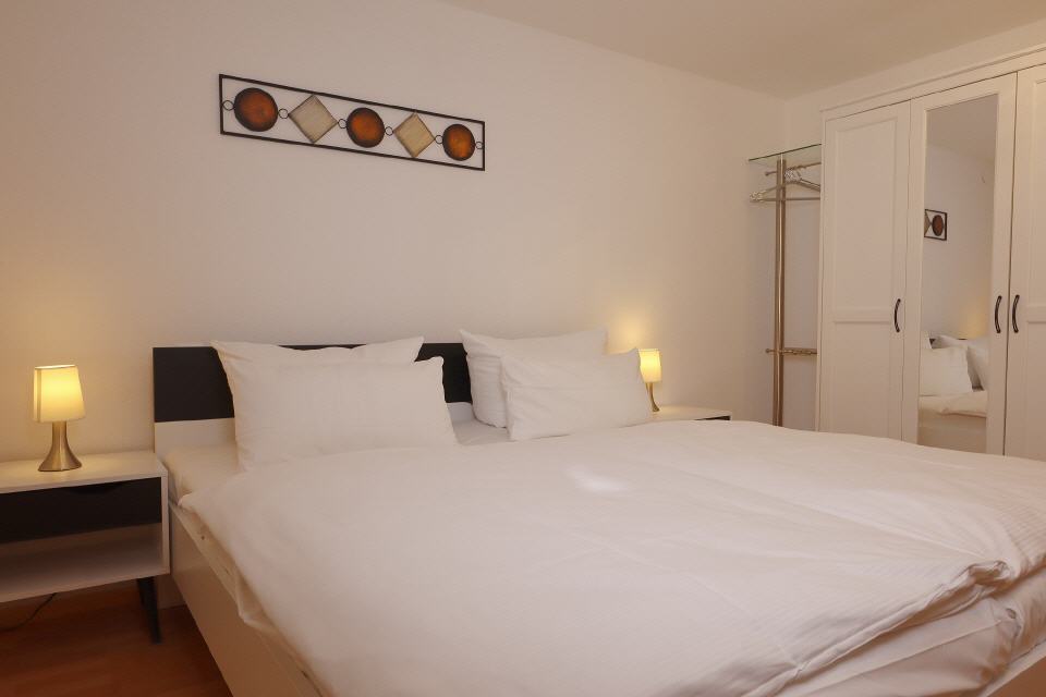 Die Ferienwohnung wird erweitert durch ein zusätzliches Schlafzimmer und ein zusätzliches Badezimmer. Beide Schlafzimmer sind ausgestattet mit einem Doppelbett (1,80 x 2,00 m), Bettwäsche, Sitzgelegenheit mit Tisch und Flachbildschirm. Beide Bäder sind mit einer Regendusche, Waschbecken und WC, Handtüchern, Handtüchern, Fön, Kosmetikspiegel ausgestattet.