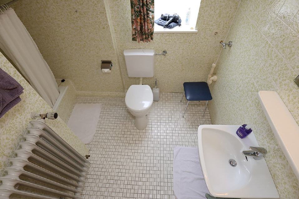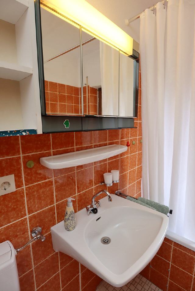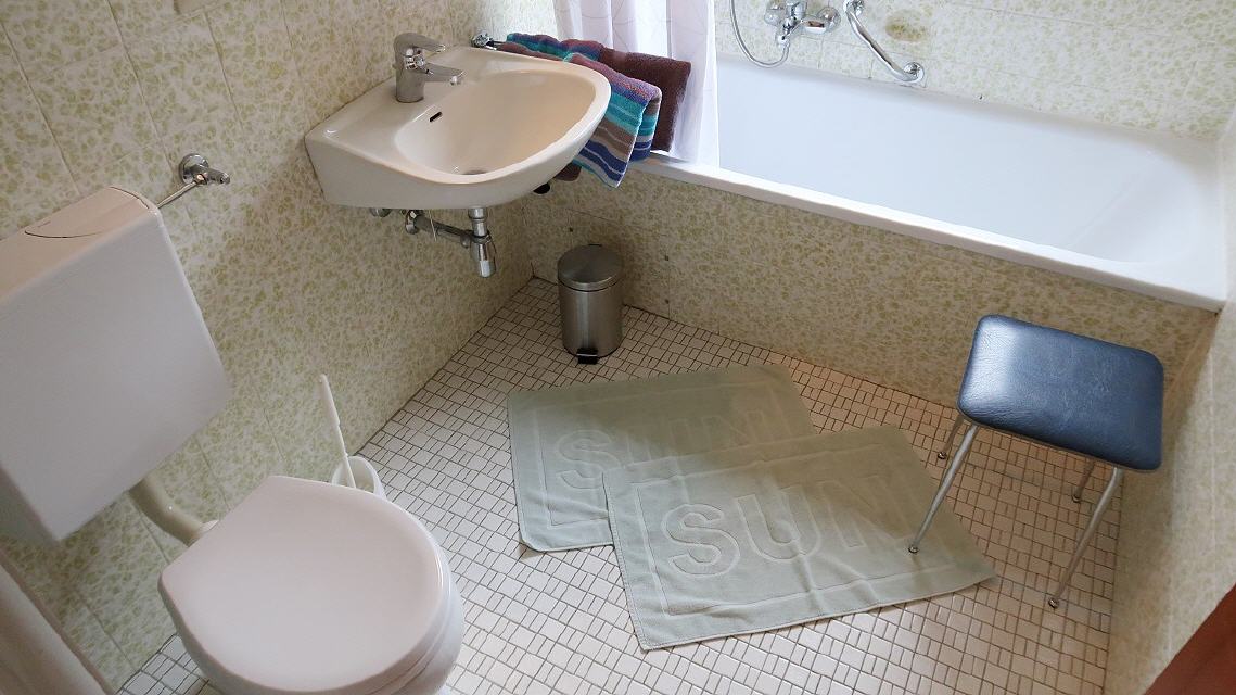 - Sanitär: Badewanne mit Dusche, WC, Wachbecken, Spiegel
