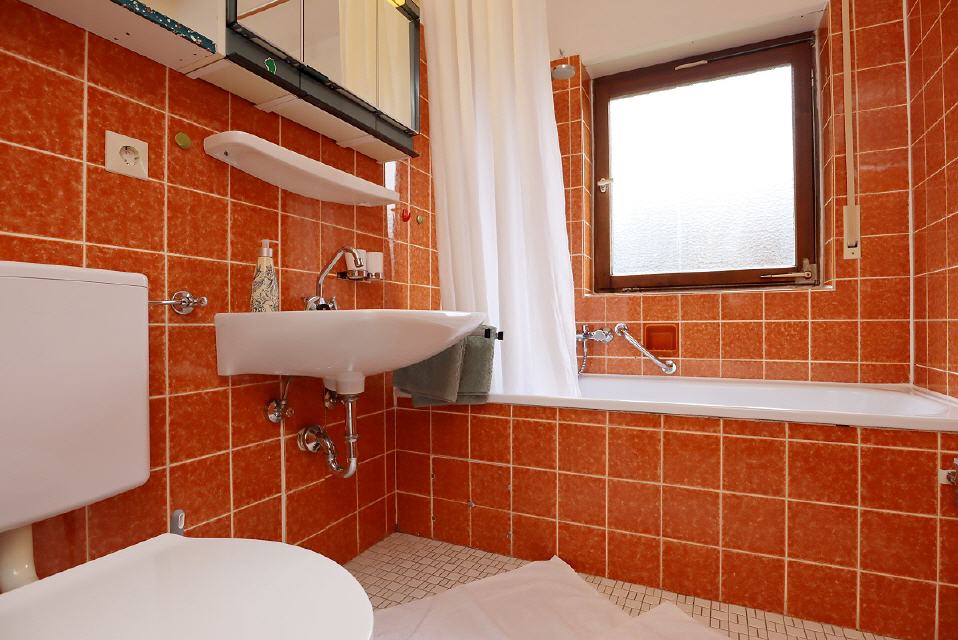 - Sanitär: Badewanne, WC, Waschbecken, Spiegel