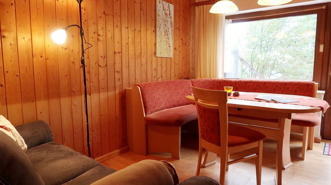 - Wohnraum: 2er Couch, Essplatz mit Eckbankgruppe, TV Flachbildschirm, Radio, Zugang zur Terrasse und zum Garten