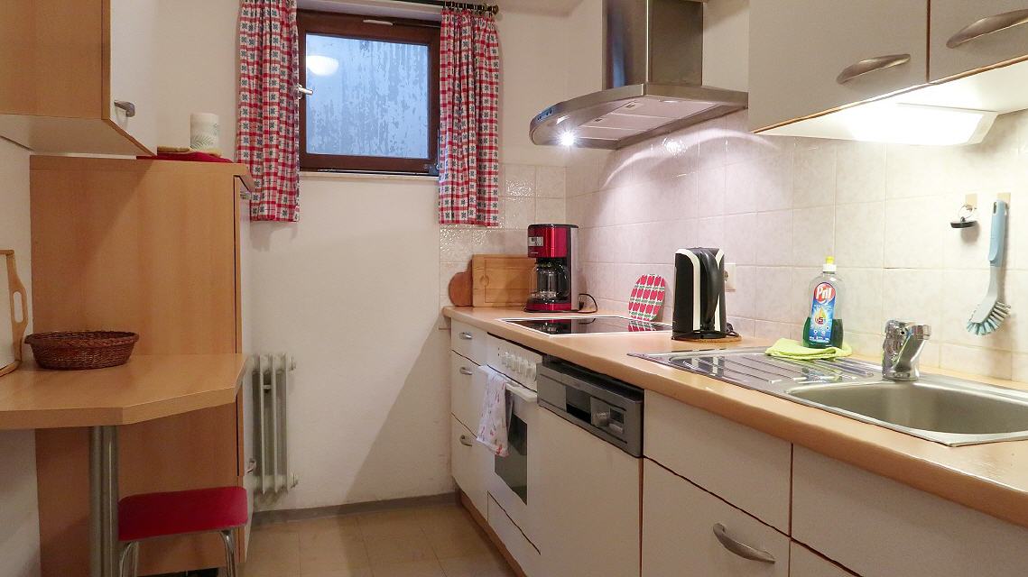 - Küche: komplett ausgestattet mit Herd und Backofen, Kühlschrank, Spülmaschine, Wasserkocher, Filterkaffeemaschine