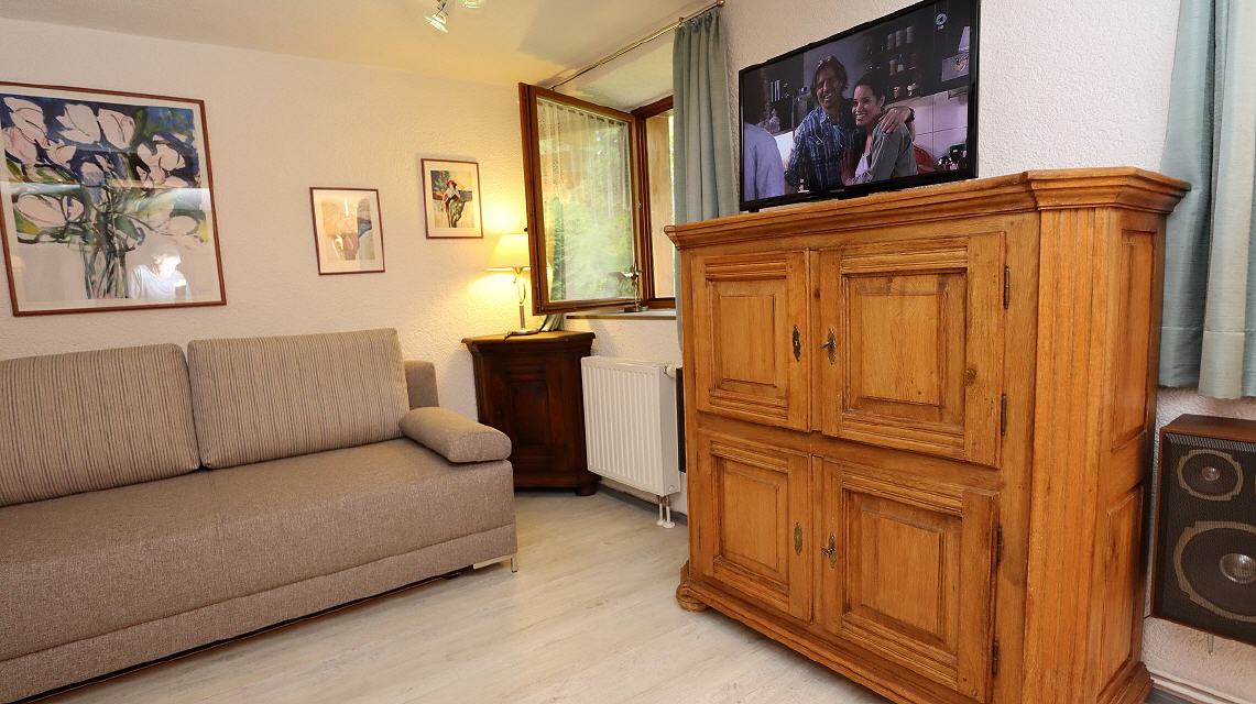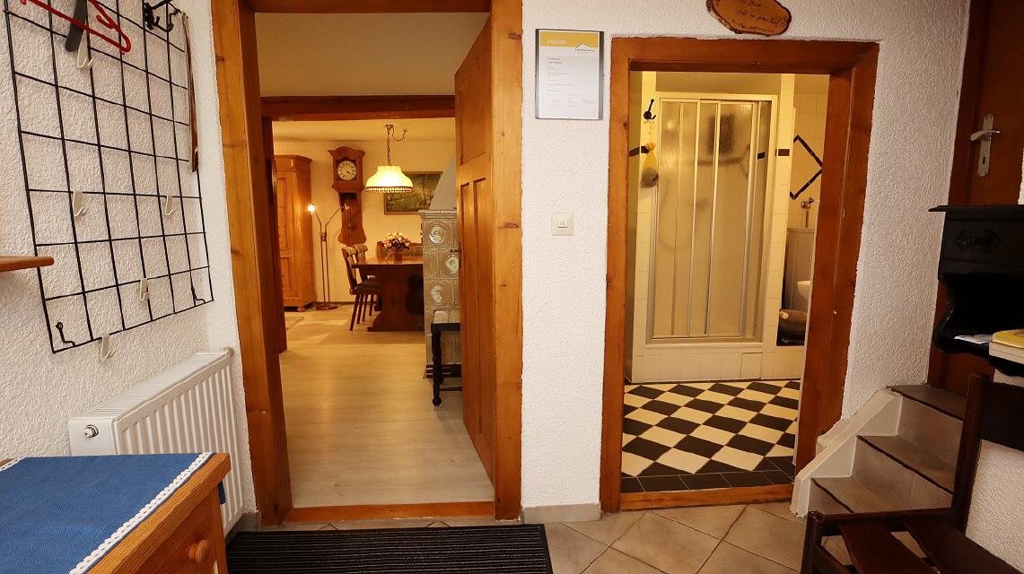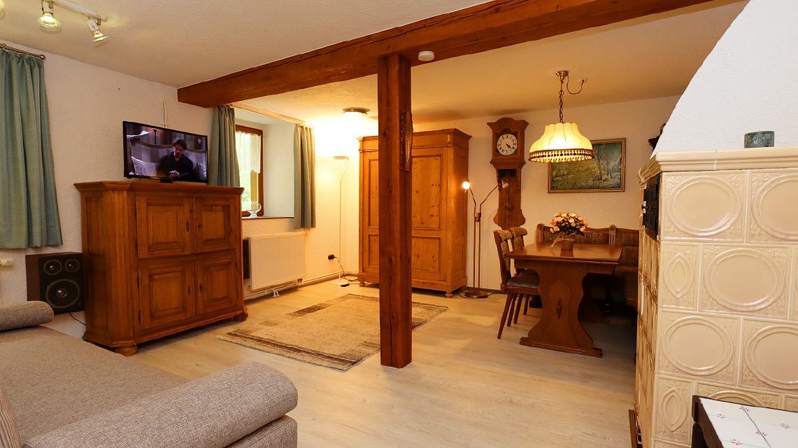 Zur Verfügung steht Ihnen ein Schlafzimmer, ein großer, schöner Wohnraum, eine geräumige Diele, eine komplett eingerichtete Küche, ein separates WC sowie Badezimmer mit Dusche und Waschmaschine. Der Wohnraum hat eine Essecke, eine ausziehbare Schlafcouch und einen gemütlichen Kachelofen. Im Schlafzimmer besteht zusätzlich die Möglichkeit, ein fünftes Bett zuzustellen.