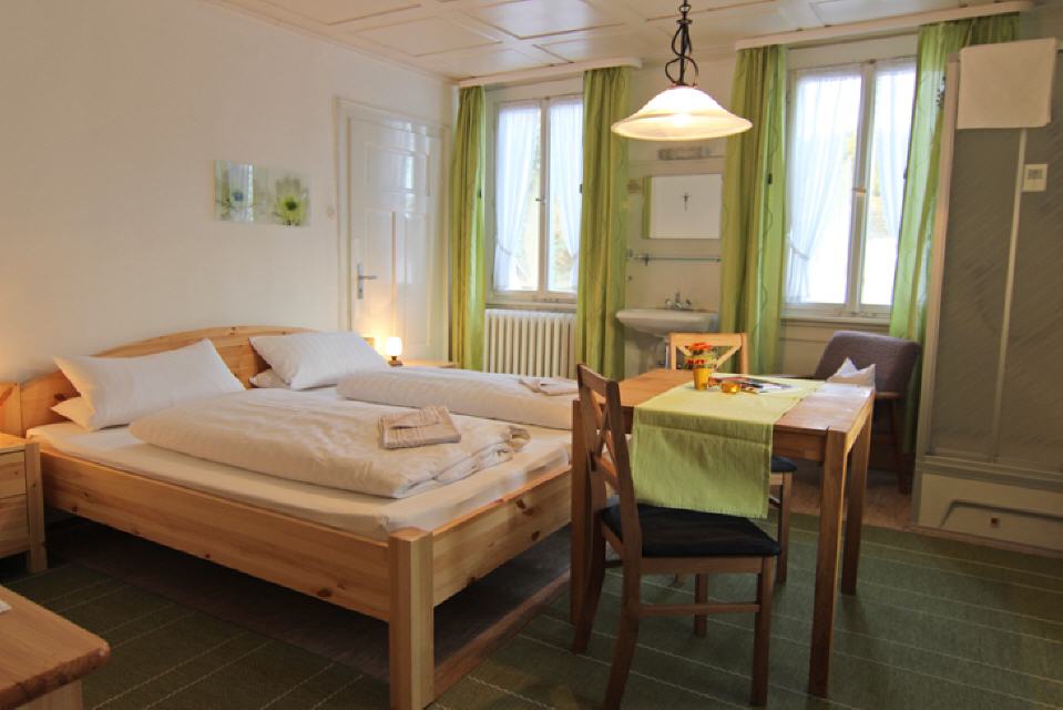 DZ mit Dusche, Etagen-WC, fließend kalt / warm Wasser, Balkon, Sitzgelegenheit, überlanges Bett (mind. 2 Meter), Weckeinrichtung, Fön, Zimmerservice