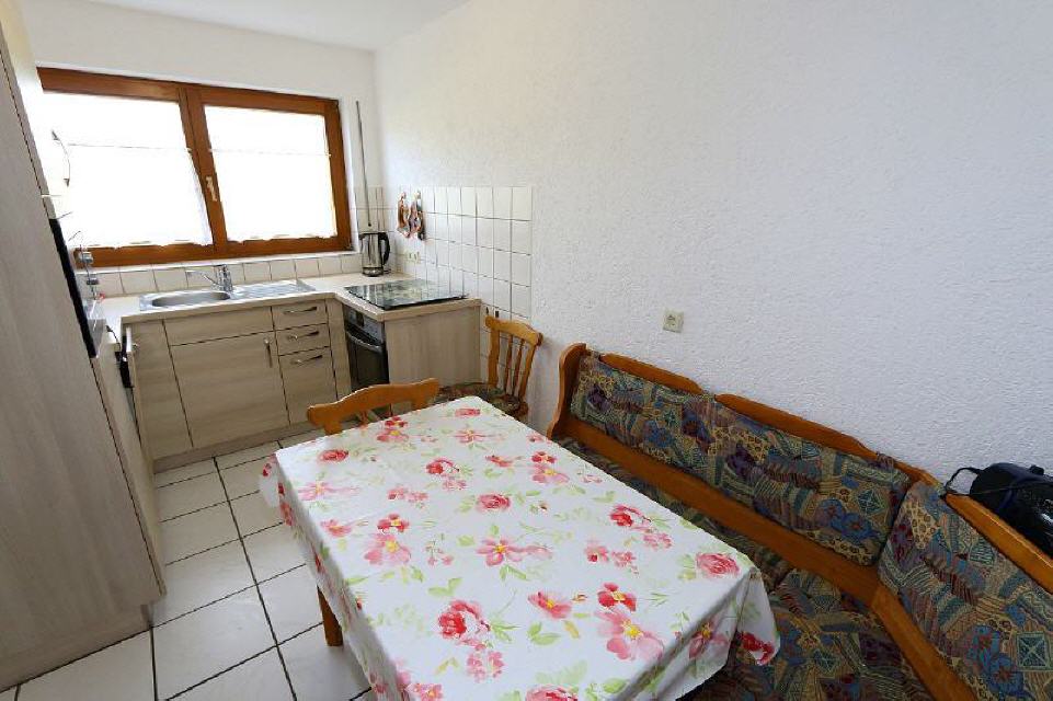 Die Ferienwohnung ist ebenerdig und verfügt über einen separaten Eingang. Sie ist ebenerdig und hat einen separaten Eingang. Die Ferienwohnung hat 60 qm Wohnfläche und bietet Platz für bis zu 5 Personen. Die Fenster sind mit Rolladen ausgestattet. Die moderne Einbauküche hat Essecke, Mikrowelle Toaster Elektro- und Holzgrill. Das Bad hat Dusche, Badewanne mit Haltegriffe, WC und Waschmaschine. Erholen Sie sich auf der großen Terrasse mit Spiel und Liegewiese, Liegestühle und Gartenmöbel. Das Wohnschlafzimmer hat ein Doppelbett und eine Couchecke. Natürlich steht Ihnen auch ein Sat-TV zur Vergügung. Das separate Schlafzimmer hat Doppel- und Einzelbett. Die Wohnung ist komplett mit Fliesen und Korkboden ausgestattet. WLAN gratis, Glasfasser-Anschluss. Bettwäsche gratis.