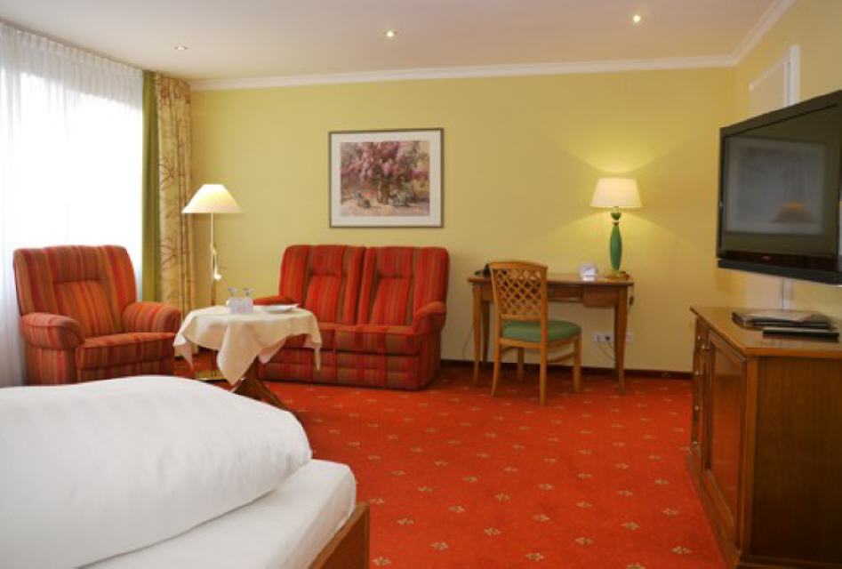 Alle Zimmer sind Nichtraucher-Zimmer und ausgestattet mit: gemütlicher Sitzecke, Flachbildfernseher mit mehrsprachigem TV-Programm und Stereo-Radio, aktuelle TV-Zeitung, Telefon, Minibar, Safe, Bademantel, Badetuch im Wellnesskorb, Haarfön und Kosmetikspiegel.