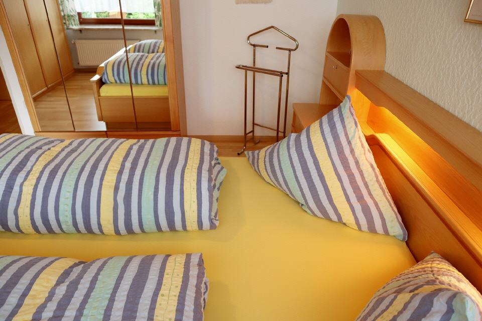 Die Wohnung verfügt über zwei Schlafzimmer (1 x mit Betten in Übergröße 2,10 m Länge) und jeweils mit einem Radiowecker. Die Aufstellung eines Kinderbettes wäre möglich. Ein Hochstuhl ist auch vorhanden. Die Betten sind bei Ihrer Anreise bereits bezogen.