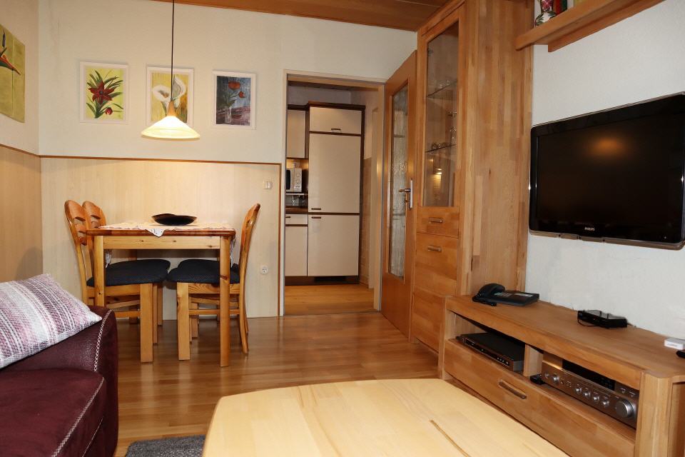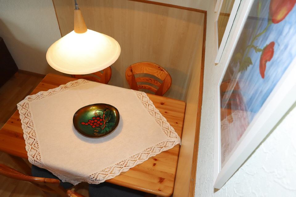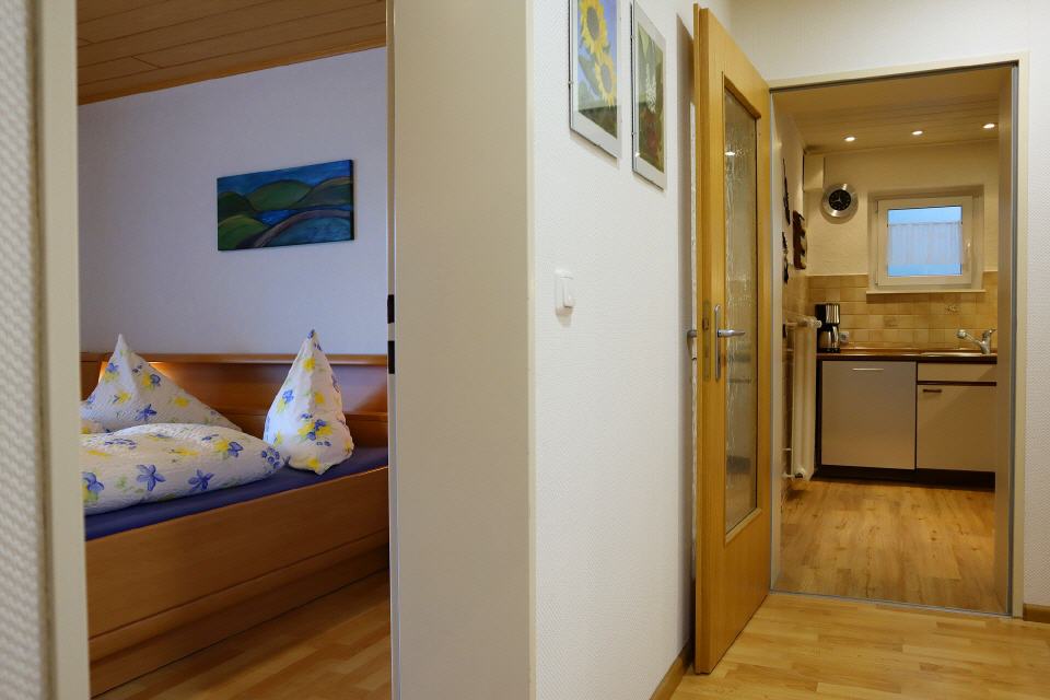 Unser Appartement befindet sich im Erdgeschoss eines 2-stöckigen Appartementhauses (mit insgesamt 12 Wohnungen, in ruhiger Waldrandlage (gegenüber von unserem Haus) im Ortsteil Ruhbühl. Mit seinen 37 Quadratmetern Wohnfläche bietet es Platz für 2 Personen. Das Appartement wurde völlig renoviert und sehr komfortabel und allergikerfreundlich eingerichtet. Es handelt sich um einen Wohn- / Schlafraum mit feststehenden Betten und hochwertigen Matratzen (jeweils Kopf- und Fußteile verstellbar) sowie einer Sitz- und einer Essecke. Die erstklassige Ausstattung unserer Nichtraucher-Wohnung ermöglicht Ihnen einen erholsamen Aufenthalt (auf dem Balkon kann natürlich geraucht werden). Außerdem gibt es eine separate, moderne und gut ausgestattete Einbauküche mit Mikrowelle sowie ein schönes Badezimmer mit Dusche / WC, sowie einen großen Balkon (mit Gartenmöbeln) zur Südseite. Das Appartement ist mit Internet (WLAN) ausgestattet sowie Sat-Fernseher (LCD-Flachbildschirm) sowie Stereoanlage und vielen Büchern.