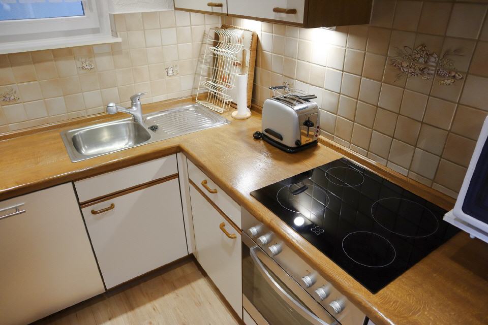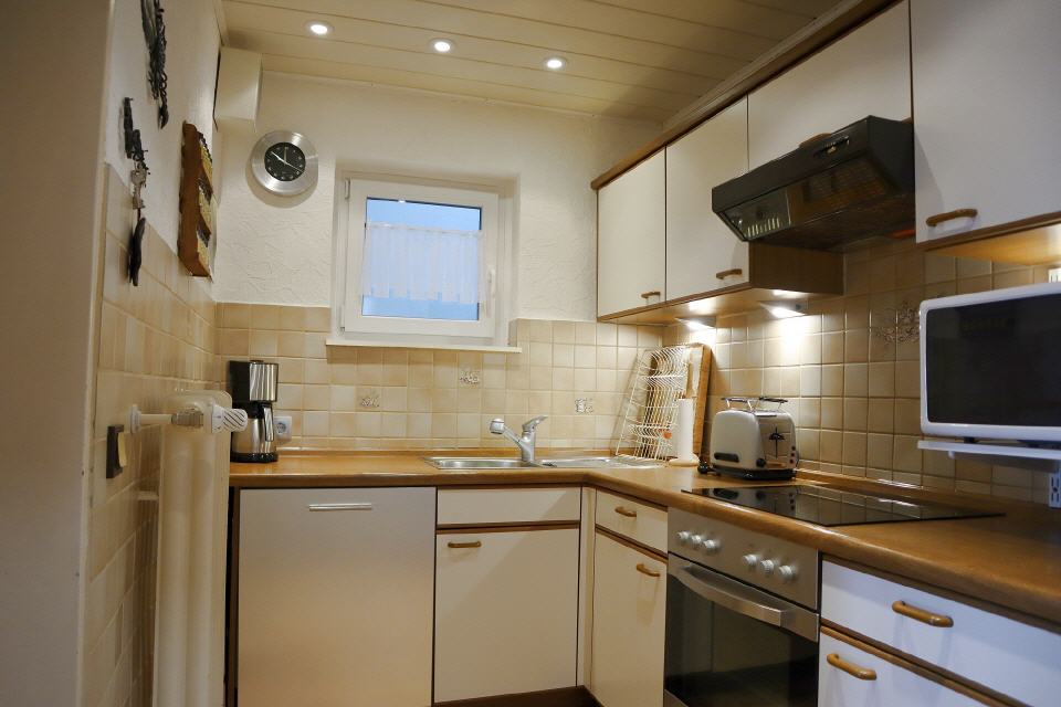 Die Wohnung besteht aus einem Wohnzimmer mit einer Sitz- und einer Essecke mit Sat-Fernseher (LCD-Flachbildschirm) sowie Stereoanlage, eigenem Telefonanschluss, WLAN, DVD-Recorder und vielen Büchern. Ein kleiner Wandtresor (für Wertsachen) ist ebenfalls in der Wohnung vorhanden. Die erstklassige Ausstattung unserer komfortablen Nichtraucher-Wohnung ermöglicht Ihnen einen erholsamen Aufenthalt (auf der Terrasse kann natürlich geraucht werden). Außerdem gibt es einen Abstellraum, eine überdachte Terrasse (zusätzlich Markise) mit Gartenmöbeln, Liegestühlen und einen großen Garten. Unsere moderne Einbauküche ist mit Herd (Cerankochfeld),Backofen, Spülmaschine, Mikrowelle, Kaffeemaschine, Handmixer, Toaster, elektr. Wasserkocher und elektr. Brotmaschine, viel Geschirr, Gläsern, Edelstahltöpfen sowie Radio ausgestattet.