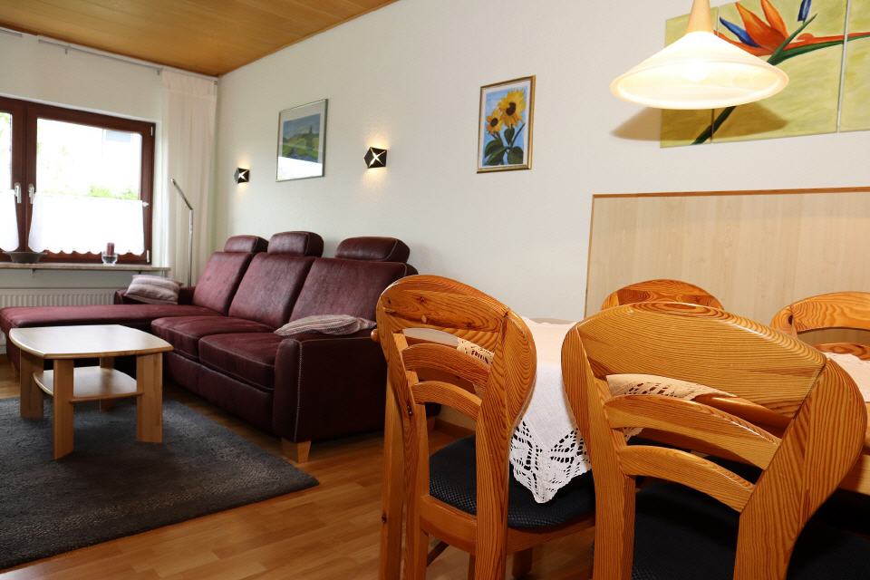 Unsere Einliegerwohnung befindet sich im Erdgeschoss unseres 2-Familienhauses (Hanglage). Sie ist ca. 70 qm groß und hat einen separaten Eingang und ist für 4 Personen eingerichtet.