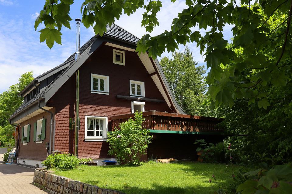 - Details Freistehendes Ferienhaus im Schwarzwald direkt am Bach in St. Blasien, Waldrand und Ortsnähe, umzäunter Garten, Schwedischer Ofen, 6 Personen, 2 Hunde.