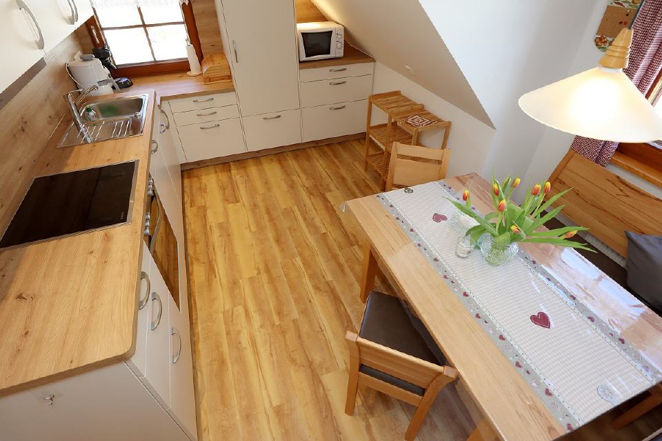 Wir bieten Ihnen eine gemütlich eingerichtete Ferienwohnung im Nebenhaus des Hofes. Sie ist komfortabel und gemütlich eingerichtet. Lebensmittel aus eigener Produktion können Ihr Frühstück bereichern. Wir bieten Ihnen auf Wunsch einen Brötchen- und Getränkeservice.