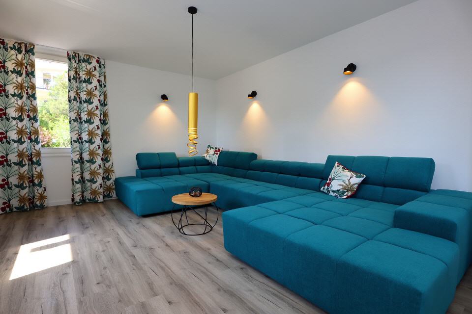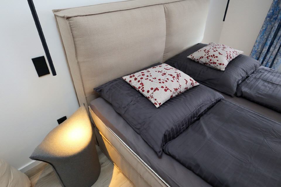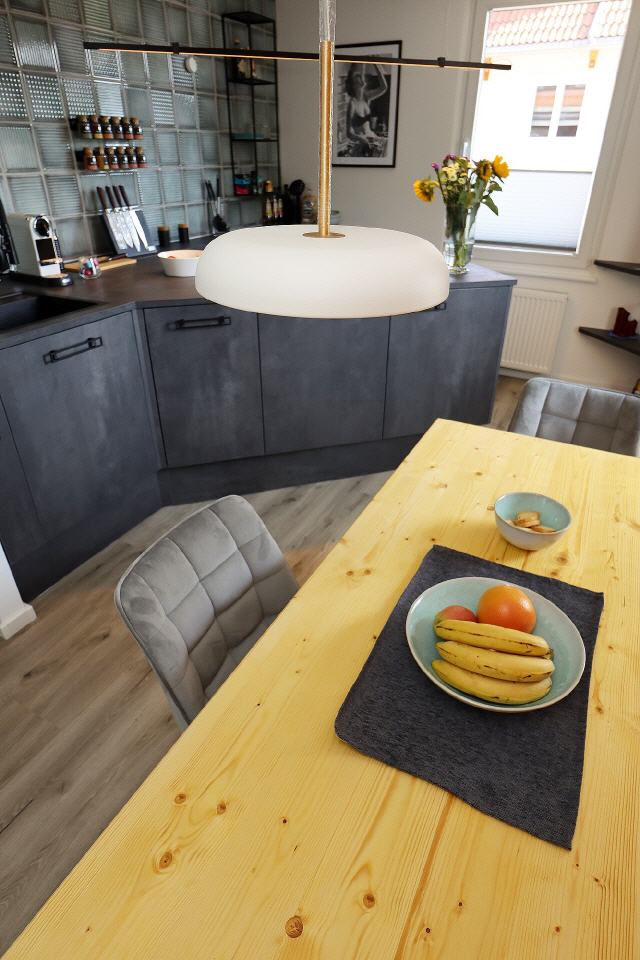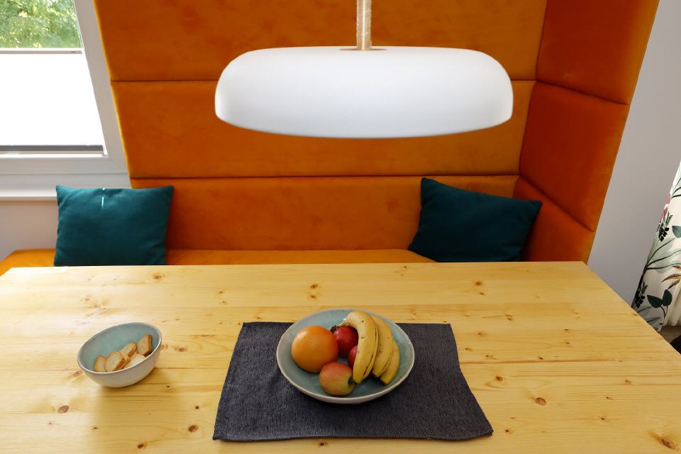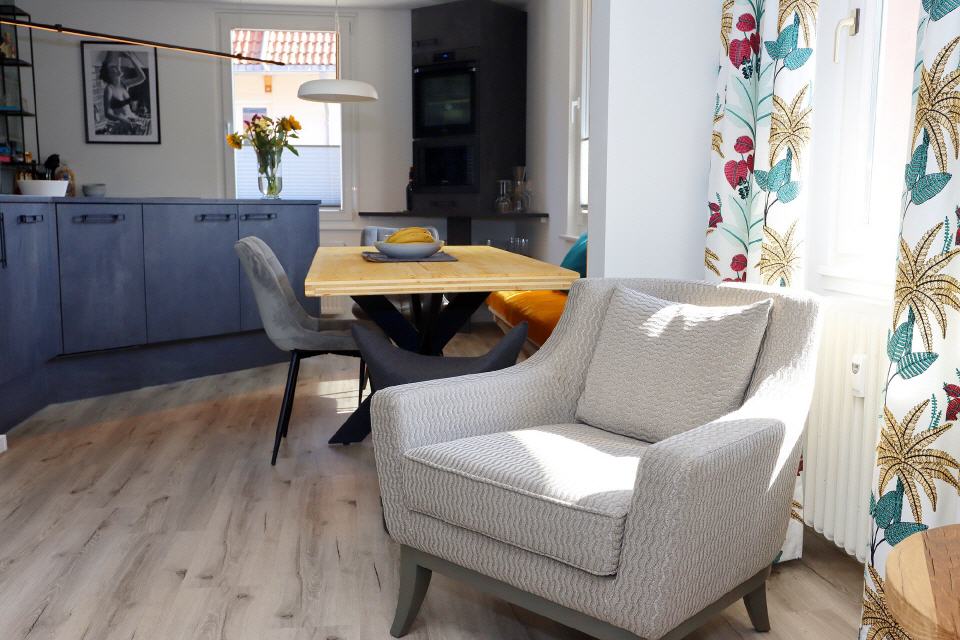 Wir haben bei der Sanierung und Einrichtung der Ferienwohnung BohoAmSee bewusst auf einen pseudo-Schwarzwaldstuben-Chic verzichtet und Lebensräume geschafen, die durch Individualität, lebensfrohe Farben und Kunst ein unvergleichliches Ambiente bieten. So wird in der vollausgestatteten Designerküche ein gemeinsamer und bgeselliger Koch-Event zu einem unvergesslichen kulinarischen Ereignis und die gemütliche Wohnlandschaft mit über 4 Meter Länge inspiriert zu interessanten Gesprächen oder animiert, mal ganz entspannt ein Buch zu lesen, einen spannenden Movie mit dem 55" LED Smart-TV anzuschauen oder seine Lieblingsmusik auf dem BoseSoundsystem anzuhörenb.