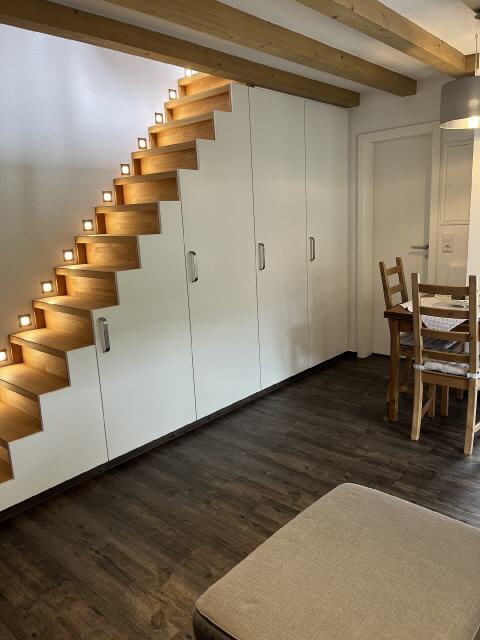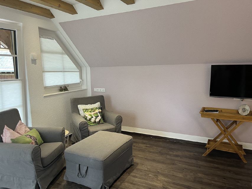 Unsere kleine, moderne Tiny-Wohnung verfügt über ein Schlafzimmer mit Doppelbett (1.60m x 2.00m) im Dachgeschoss und Ausblick in das idyllische Fischbachtal. Außerdem befindet sich im unteren Bereich ein kleines Badezimmer mit Dusche und WC, eine Küchenzeile und ein Wohn-Essbereich. Auf unserem abgelegenen Hof im Herzen von Fischbach können Sie perfekt zu zweit entspannen und die Natur genießen. Vor Ort befindet sich ein Weiher mit Grillstelle. Nach Absprache kann natürlich gerne gegrillt werden.