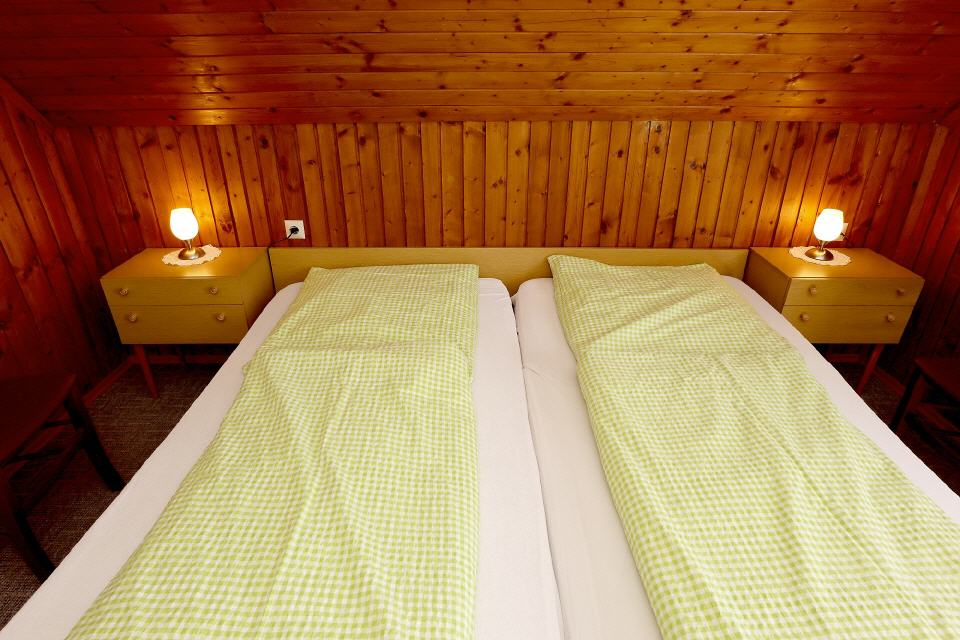 Das Balkonzimmer hat ein Ehebett und ein Französisches Bett.