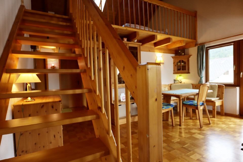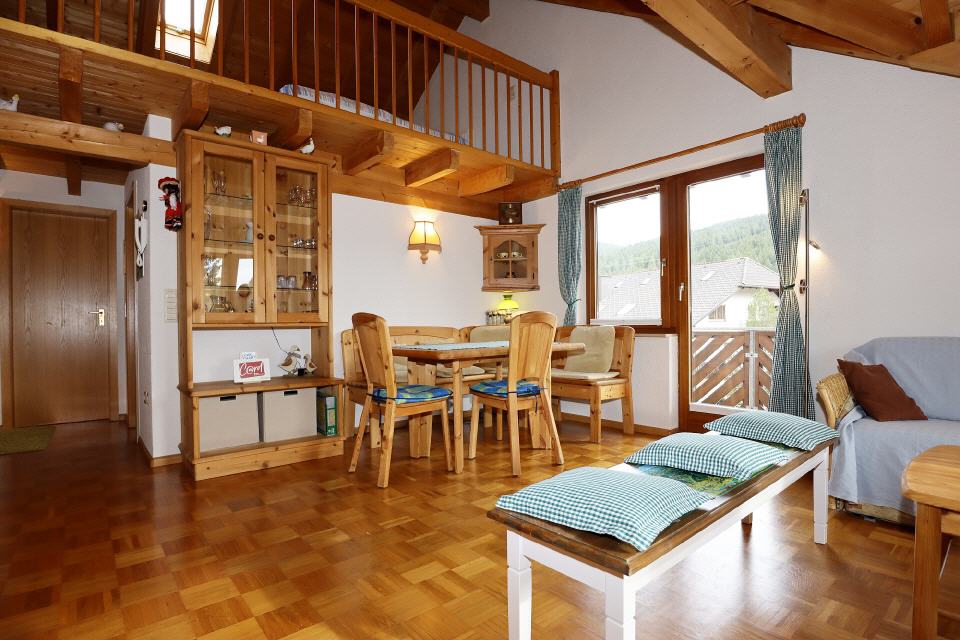 In dieser Ferienwohnung im weltberühmten Ortsteil Titisee werden Sie sich wohlfühlen. Sie liegt in einem ruhigen Wohngebiet, nur wenige Minuten zu Fuß vom See entfernt. Die Fewo hat zwei Balkone. Die komfortable Maisonettewohnung ist komplett eingerichtet und mit Holzdecke und Parkettboden (außer Galerie) ausgestattet. Sie hat eine Wohnfläche von 64 qm und bietet Platz für bis zu 4 Personen. Zum Bahnhof Titisee sind es ebenfalls nur wenige Gehminuten. Dank der Konus-Gästekarte, die Sie von uns erhalten, können Sie von hier aus kostenlos zu zahlreichen Unternehmungen aufbrechen.