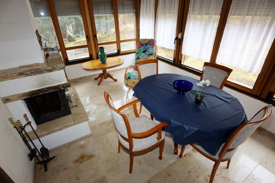 - Wohnbereich: Hifi-Anlage, Spiele, Hubbett, TV Digital, Kamin, Schlafsofa, Esstisch