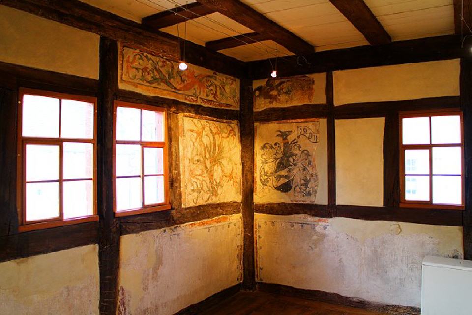 Eine Verbindung mit den Endinger Stadtherren von Üsenberg im 13. und 14. Jahrhundert ließe sich bestensfalls aus der älteren Bausituation im Keller herleiten. Giebel und Zwerchgiebel des Hauses zeigen die typische Fachwerkkonstruktion des 15. Jahrhunderts. Das Dachgebälkt konnte 1482 / 83 datiert werden; die Wandmalereien wurden 1495 geschaffen.