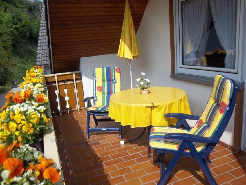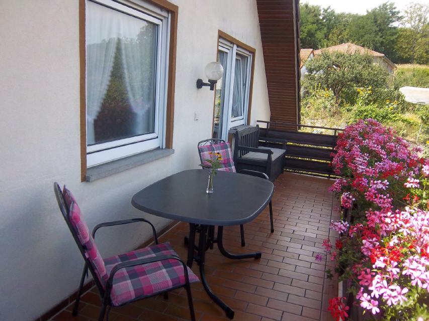 mit Balkon und Gartenmöbel