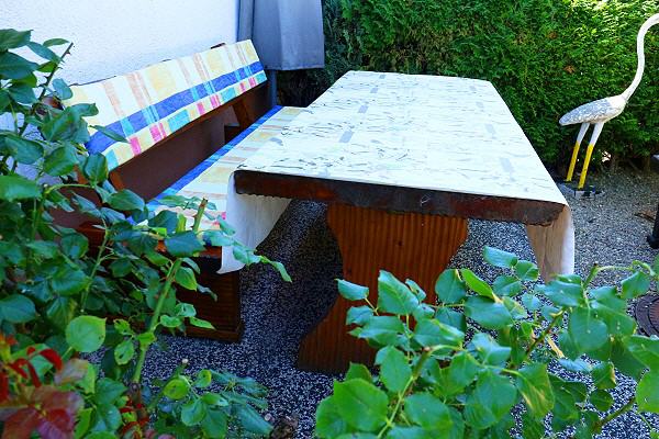 Und zum Ausruhen nach einem erlebnisreichen Tag lädt Sie die Sitzgelegenheit unter dem Schatten des Baumes vor dem Bungalow ein. Hier können Sie sich entspannen und die Natur und die frische Luft bei einer Tasse Kaffee oder Tee genießen.