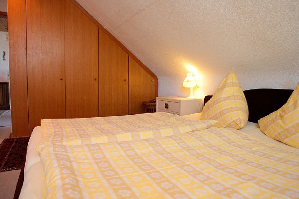 Das Schlafzimmer mit komfortablem Doppelbett bietet bequeme Schlafmöglichkeit für 2 Personen und bringt nach einem langen Tag in der Natur die verdiente Ruhe und Erholung für den nächsten Tag. Ein Kleiderschrank sowie eine Sitzgelegenheit, Nachttische und -Leuchten sind ebenfalls vorhanden.