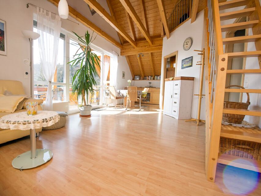 - Wohn-/Esszimmer in behaglicher, offener Holzbauweise